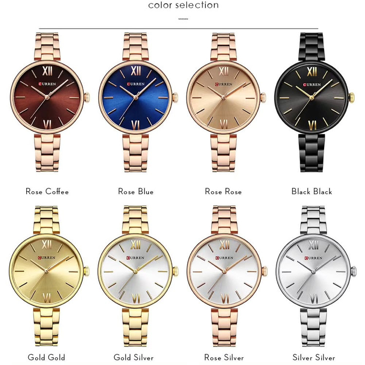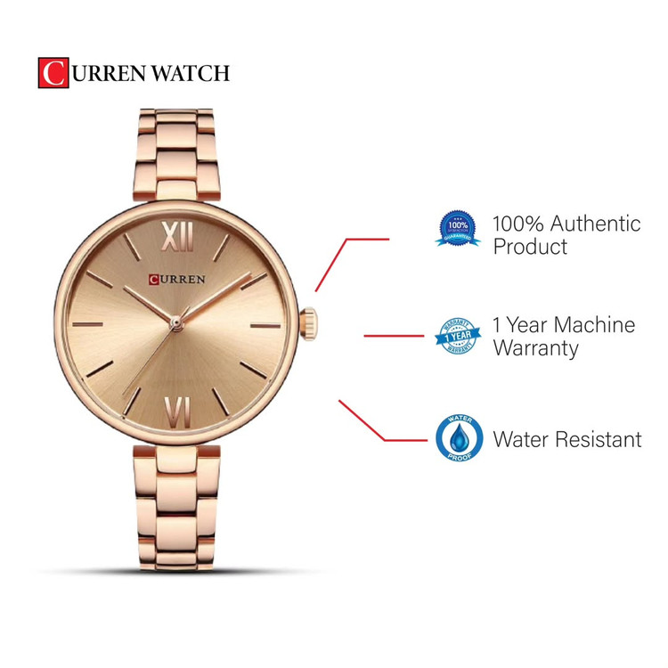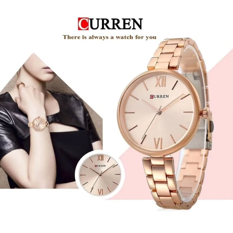 ساعت مچی زنانه کارن بند استیل CURREN 9017 ساعت اورجینال ضداب
