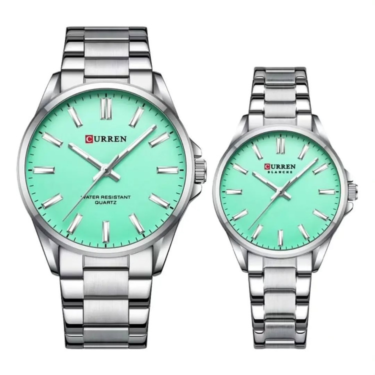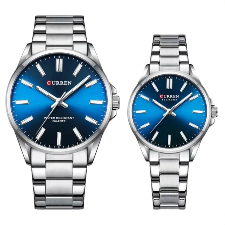 ساعت مچی ست مردانه و زنانه کارن بند استیل CURREN 9090 ساعت اورجینال ضداب