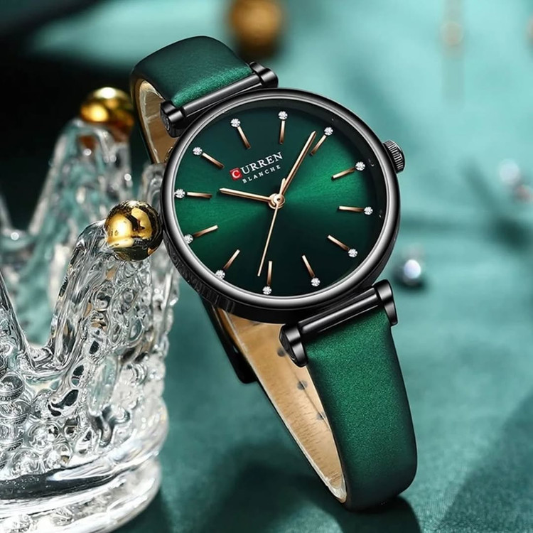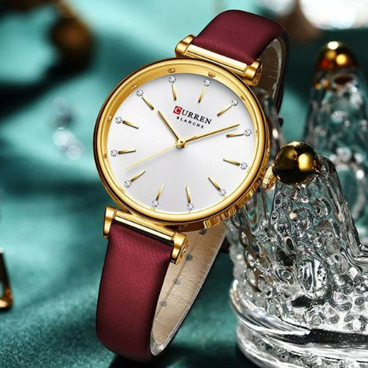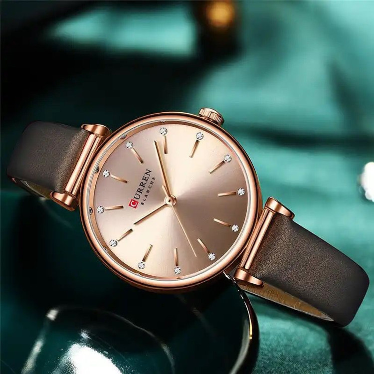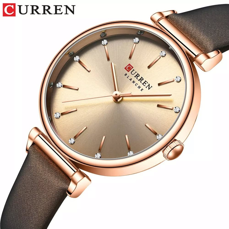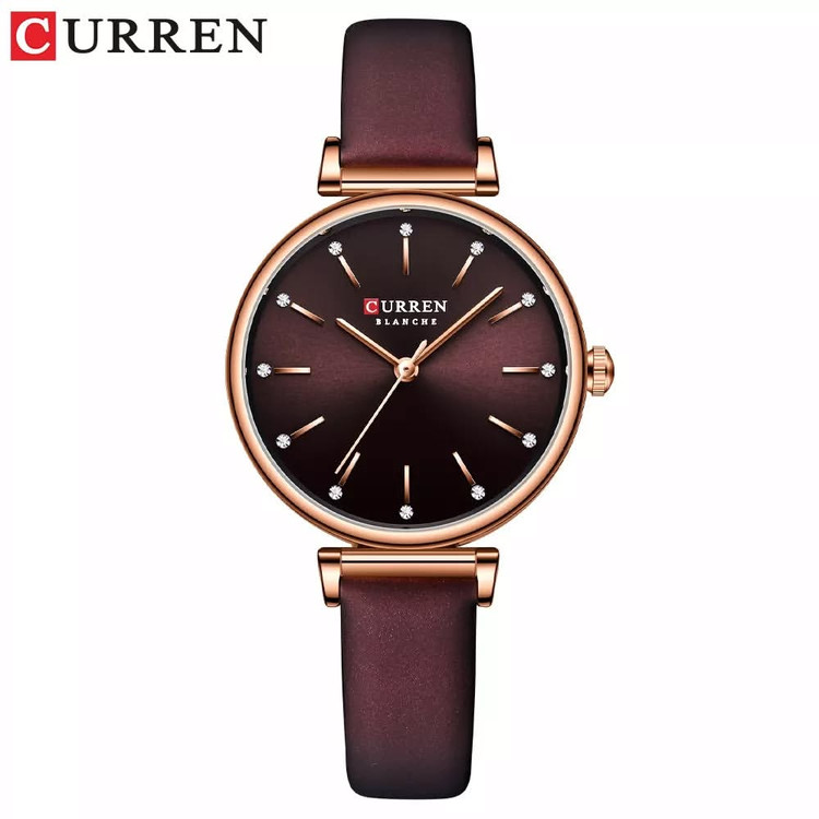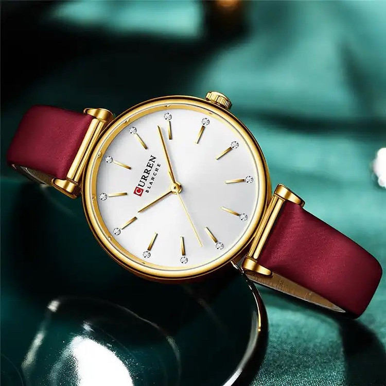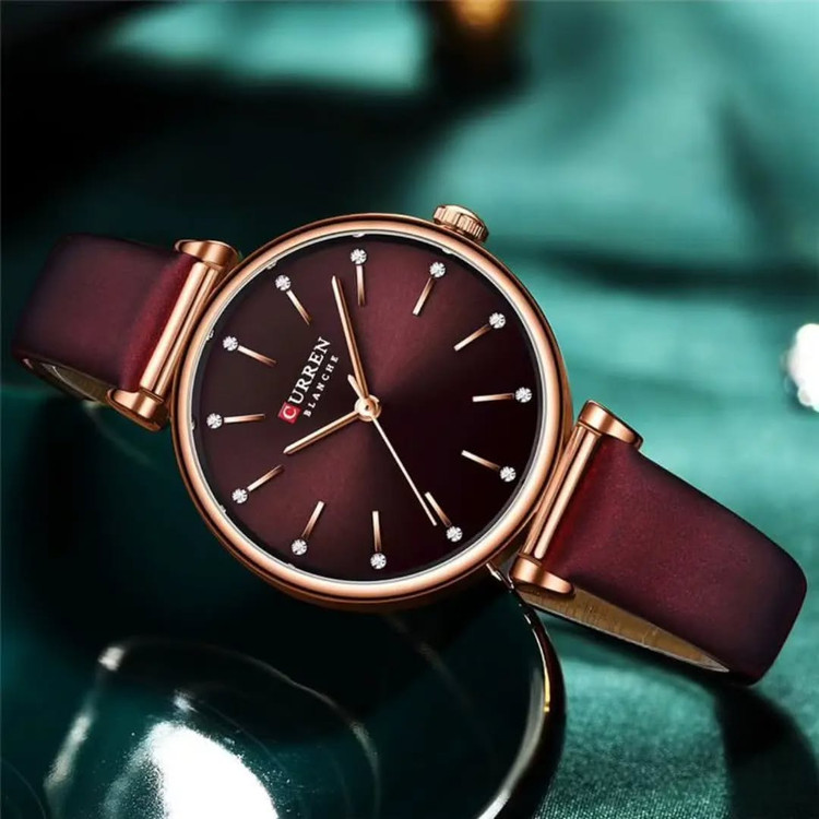 ساعت مچی زنانه کارن بندچرمی CURREN 9081 ساعت اورجینال ضداب
