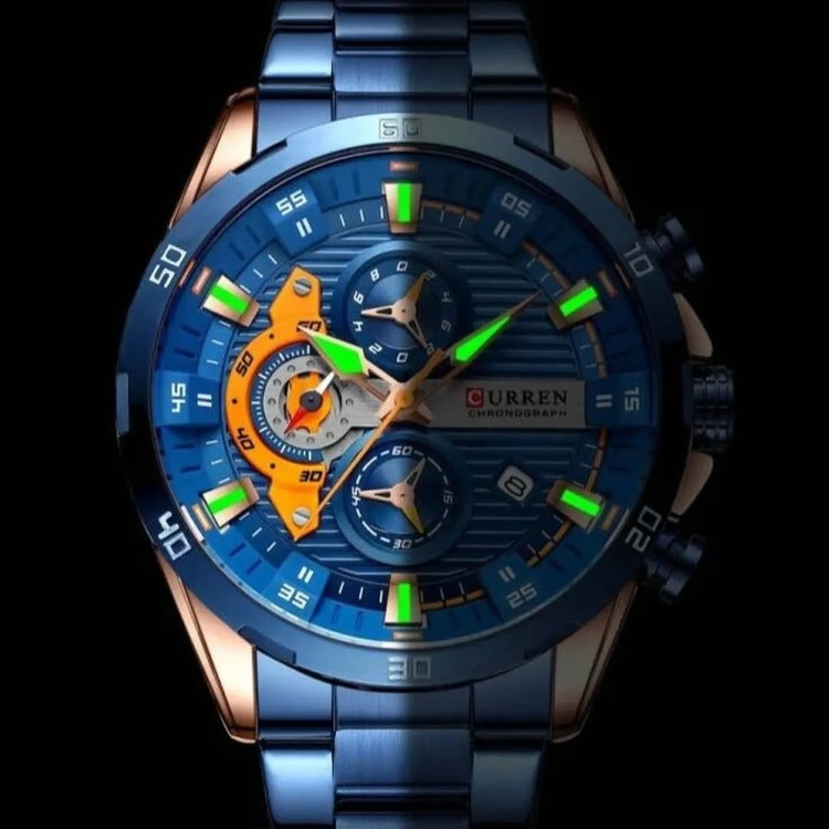 ساعت مچی CURREN مدل 8402 یک ساعت مردانه با طراحی شیک و ویژگیهای برجسته است. این ساعت دارای مشخصات زیر میباشد: - **حرکت کوارتز ژاپنی**: برای دقت بالا در نمایش زمان¹. - **ضد آب تا 3ATM**: مناسب برای شستشوی دست، عرق و باران، اما نباید در آب غوطهور شود یا در حمام و شنا استفاده شود¹. - **صفحه نمایش شبنما**: عقربهها و نشانگرهای این ساعت دارای قابلیت شبنما هستند که در تاریکی نیز قابل مشاهدهاند². - **بدنه و بند استیل ضد زنگ**: این ساعت دارای بدنه و بندی از جنس استیل ضد زنگ است که مقاومت بالایی در برابر خراش و زنگزدگی دارد². - **کرنوگراف**: این ساعت دارای سه موتور فعال برای اندازهگیری زمانهای مختلف مانند صدم ثانیه، ثانیه و دقیقه است¹. - **قطر صفحه نمایش**: 47 میلیمتر و ضخامت بدنه 1.4 سانتیمتر². این ساعت با طراحی مدرن و ویژگیهای فنی پیشرفته، گزینهای عالی برای استفاده روزمره و مجالس رسمی است.