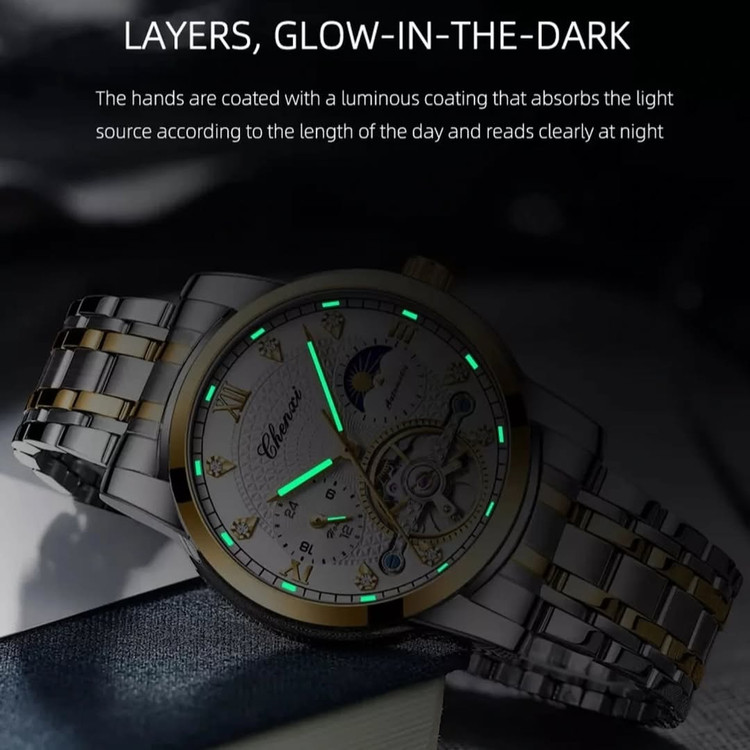 ساعت مچی بند استیل CHENXI 8870 با طراحی لاکچری و خاص خود، یکی از انتخابهای برتر برای کسانی است که به دنبال ترکیبی از زیبایی و عملکرد عالی هستند. این ساعت توانسته است با ویژگیهای برجسته خود، جایگاهی ویژه در میان علاقهمندان به ساعتهای مچی پیدا کند. #### طراحی و ظاهر: ساعت CHENXI 8870 با بدنهای از جنس آلیاژ ضد حساسیت و بند استیل ترکیب مات و براق، جلوهای لوکس و مدرن دارد. طراحی منحصر به فرد و رنگ ثابت این ساعت، آن را به یک اکسسوری بینظیر برای هر موقعیتی تبدیل کرده است. قاب شیشهای پشت این ساعت که موتور آن را نشان میدهد، جلوهای خاص و منحصر به فرد به ساعت میبخشد. #### کیفیت ساخت: بدنه آلیاژ ضد حساسیت و بند استیل با کیفیت بالا، این ساعت را به یک انتخاب مطمئن و بادوام تبدیل کردهاند. شیشهی معدنی ضد خش و ضد ضربه نیز از صفحه ساعت در برابر خط و خش و ضربه محافظت میکند و باعث میشود که ساعت همیشه به زیبایی روز اول باقی بماند. #### عملکرد و دقت: ساعت CHENXI 8870 از موتور مکانیکی اتوماتیک بهره میبرد که نیازی به باتری ندارد و با حرکت مچ دست شما کار میکند. این موتور دقیق، زمان را با دقت بالا نمایش میدهد و عملکرد مطمئن خود را در طول زمان حفظ میکند. نشانگر ۲۴ ساعته و نشانگر ماه و خورشید از ویژگیهای کاربردی این ساعت هستند که به شما امکان مشاهده دقیق زمان را میدهند. #### جزئیات زیبا: صفحهی این ساعت دارای اعداد رومی نگینی زیبا است که جلوهای کلاسیک و شیک به ساعت میبخشد. عقربهها و نشانگرهای شب نما نیز به راحتی در شرایط نوری مختلف قابل مشاهده میباشند. قطر صفحهی ۴۱ میلیمتری این ساعت، جلوهای شیک و متفاوت به آن میبخشد و به راحتی قابل مشاهده است. #### مقاومت و دوام: این ساعت دارای مقاومت در برابر آب تا عمق 30 متر (3ATM) است که به شما امکان میدهد با خیالی آسوده در شرایط مختلف، از جمله شستشوی دستها و باران، از آن استفاده کنید. قفل پروانهای دو طرفه این ساعت نیز به طراحی کلی ساعت جلوهای زیبا و منحصر به فرد میبخشد و باعث اطمینان از استحکام بند ساعت میشود. #### رنگهای جذاب: ساعت CHENXI 8870 در ۵ رنگ جذاب عرضه میشود که هر کدام از این رنگها دارای جلوهای خاص و منحصر به فرد هستند و به شما امکان میدهد ساعتی مطابق با سلیقه و استایل شخصی خود انتخاب کنید. #### ویژگیهای اضافی: این ساعت همراه با جعبه اصلی برند CHENXI و کارت گارانتی یکساله موتور ارائه میشود که به شما اطمینان میدهد در صورت بروز هرگونه مشکل، میتوانید از خدمات پس از فروش بهرهمند شوید. ### مزایا: - **طراحی شیک و مدرن:** طراحی شیک و مدرن این ساعت باعث میشود که هم در جلسات رسمی و هم در موقعیتهای روزمره، بهترین همراه شما باشد. - **دوام بالا:** بدنه آلیاژ ضد حساسیت و شیشه معدنی ضد خش و ضد ضربه، این ساعت را به یک انتخاب مطمئن و بادوام تبدیل میکند. - **عملکرد عالی:** موتور اتوماتیک با دقت بالا، نشانگر ۲۴ ساعته و نشانگر ماه و خورشید، عملکردی بینظیر و مطمئن را ارائه میدهند. - **ویژگیهای اضافی:** عقربهها و نشانگرهای شب نما، قفل پروانهای دو طرفه و طراحی پشت قاب شیشهای، این ساعت را به یک ابزار شیک و چندکاره تبدیل میکنند. ### کاربرد و سبک: ساعت مچی بند استیل CHENXI 8870 نه تنها نشاندهندهی زمان است، بلکه به عنوان یک اکسسوری شیک و زیبا، سبک و شخصیت شما را نیز تکمیل میکند. با پوشیدن این ساعت، میتوانید اطمینان حاصل کنید که همیشه جذاب و متمایز به نظر خواهید رسید. این ساعت با طراحی بینظیر و ویژگیهای ممتاز خود، یک انتخاب عالی برای افرادی است که به دنبال ترکیبی از زیبایی و عملکرد عالی هستند.