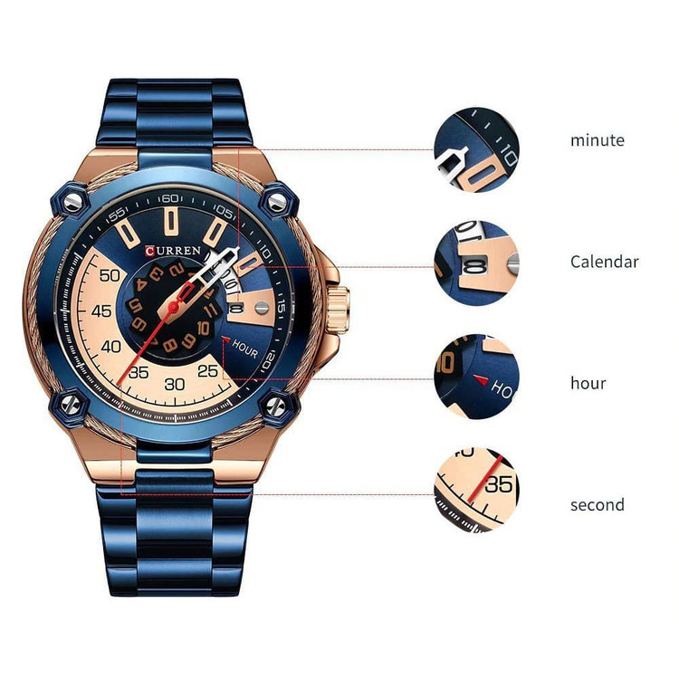 ساعت مچی مردانه بند استیل CURREN 8345، با طراحی خاص و ویژگیهای برجسته، یکی از بهترین انتخابها برای مردانی است که به دنبال ساعتی با ظاهر مدرن و عملکرد عالی هستند. این ساعت توانسته است با ترکیبی از زیبایی و کیفیت بالا، جایگاهی ویژه در میان علاقهمندان به ساعتهای مچی پیدا کند. #### طراحی و ظاهر: ساعت CURREN 8345 با بدنهای از جنس آلیاژ روی (Zinc) و بند استیل ضد زنگ، جلوهای لوکس و مدرن دارد. طراحی منحصر به فرد و رنگ ثابت این ساعت، آن را به یک اکسسوری بینظیر برای هر موقعیتی تبدیل کرده است. بند استیل ضد حساسیت و راحتی بیشتری را برای پوست شما به ارمغان میآورد. #### کیفیت ساخت: بدنه آلیاژ روی و بند استیل با کیفیت بالا، این ساعت را به یک انتخاب مطمئن و بادوام تبدیل کردهاند. این مواد با دوام و مقاومت بالا، ساعت را در برابر خوردگی و حساسیتهای پوستی محافظت میکنند. شیشهی ضد خش نیز از صفحه ساعت در برابر خط و خش محافظت میکند و باعث میشود که ساعت همیشه به زیبایی روز اول باقی بماند. #### عملکرد و دقت: ساعت CURREN 8345 از موتور کوارتز با دقت بالا بهره میبرد که به وسیله باتری تغذیه میشود. این موتور دقیق، زمان را با دقت بالا نمایش میدهد و عملکرد مطمئن خود را در طول زمان حفظ میکند. نمایشگر روزهای ماه از ویژگیهای کاربردی این ساعت است که به شما امکان مشاهده دقیق زمان را میدهد. #### جزئیات زیبا: صفحهی این ساعت دارای طراحی زیبا و دقیقی است که توجه هر کسی را به خود جلب میکند. عقربهها و نشانگرهای ساعت نیز به راحتی در شرایط نوری مختلف قابل مشاهده میباشند. قفل استیل حک شده این ساعت نیز به طراحی کلی ساعت جلوهای زیبا و منحصر به فرد میبخشد. #### مقاومت و دوام: این ساعت دارای مقاومت در برابر آب تا عمق 30 متر (3ATM) است که به شما امکان میدهد با خیالی آسوده در شرایط مختلف، از جمله شستشوی دستها و باران، از آن استفاده کنید. بند استیل ضد حساسیت و شیشهی ضد خش، این ساعت را به یک انتخاب مطمئن و بادوام تبدیل میکند. #### ویژگیهای اضافی: همراه با این ساعت، جعبه اصلی برند CURREN و کارت گارانتی یکساله موتور ارائه میشود که به شما اطمینان میدهد در صورت بروز هرگونه مشکل، میتوانید از خدمات پس از فروش بهرهمند شوید. ### مزایا: - **طراحی شیک و مدرن:** طراحی شیک و مدرن این ساعت باعث میشود که هم در جلسات رسمی و هم در موقعیتهای روزمره، بهترین همراه شما باشد. - **دوام بالا:** بدنه آلیاژ روی و شیشه ضد خش، این ساعت را به یک انتخاب مطمئن و بادوام تبدیل میکند. - **عملکرد عالی:** موتور کوارتز با دقت بالا، نمایشگر روزهای ماه، عملکردی بینظیر و مطمئن را ارائه میدهند. - **ویژگیهای اضافی:** عقربهها و نشانگرهای واضح، قفل استیل حک شده و بند استیل ضد حساسیت، این ساعت را به یک ابزار شیک و چندکاره تبدیل میکنند. ### کاربرد و سبک: ساعت مچی مردانه بند استیل CURREN 8345 نه تنها نشاندهندهی زمان است، بلکه بهعنوان یک اکسسوری شیک و زیبا، سبک و شخصیت شما را نیز تکمیل میکند. با پوشیدن این ساعت، میتوانید اطمینان حاصل کنید که همیشه جذاب و متمایز به نظر خواهید رسید. این ساعت با طراحی بینظیر و ویژگیهای ممتاز خود، یک انتخاب عالی برای مردانی است که به دنبال ترکیبی از زیبایی و عملکرد عالی هستند.