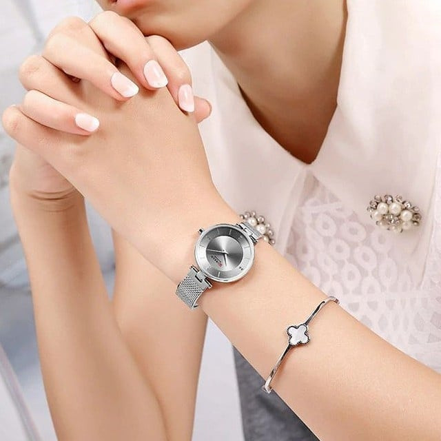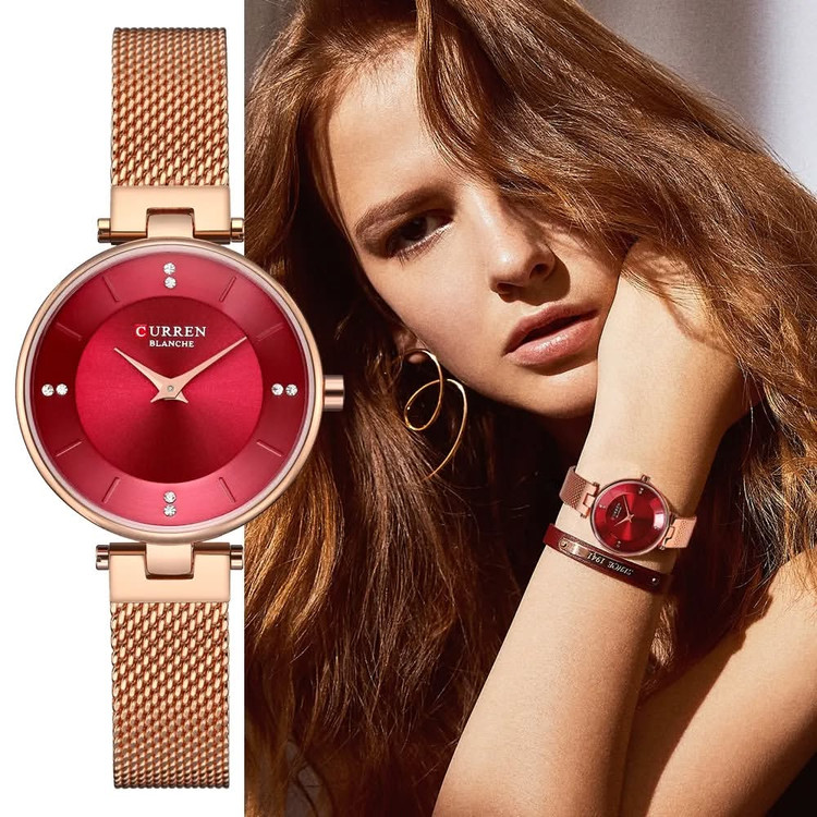 ساعت مچی زنانه کارن بند استیل حصیری CURREN 9031 ساعت اورجینال ضداب