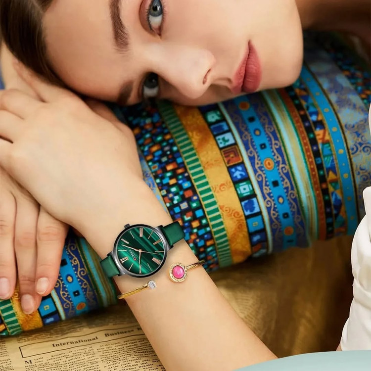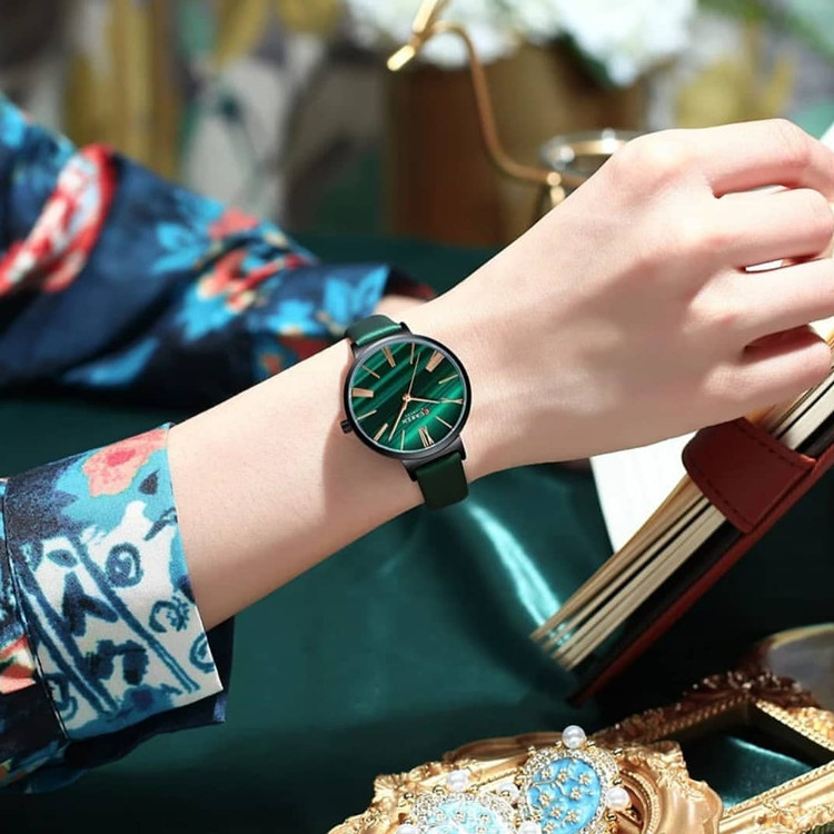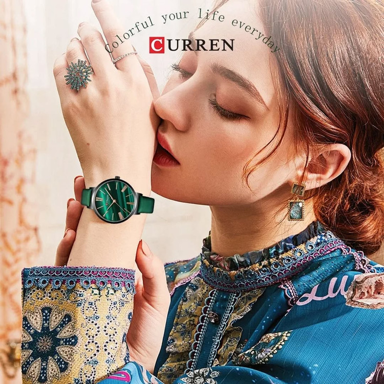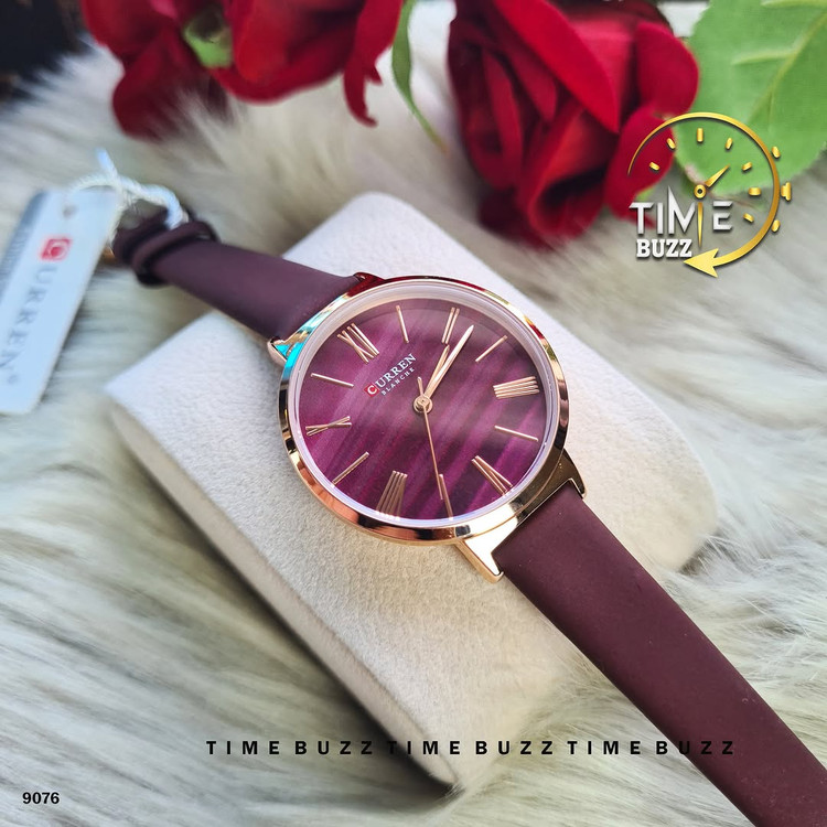 ساعت مچی زنانه کارن بند چرمی CURREN 9076 ساعت اورجینال ضداب