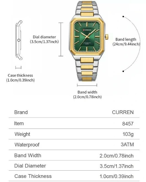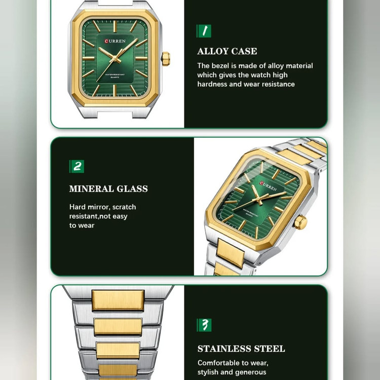 ساعت مچی مردانه بند استیل CURREN 8457 Silver-Blue، مدل 2024، با طراحی صفحه مربعی شیک و جذاب، یکی از بهترین انتخابها برای مردانی است که به دنبال ساعتی با ظاهر مدرن و عملکرد عالی هستند. این ساعت توانسته است با ترکیبی از زیبایی و کیفیت بالا، جایگاهی ویژه در میان علاقهمندان به ساعتهای مچی پیدا کند. #### طراحی و ظاهر: ساعت CURREN 8457 با بدنهای از جنس آلیاژ روی (Zinc) و بند فول استیل، جلوهای لوکس و مدرن دارد. طراحی منحصر به فرد و رنگ ثابت این ساعت، آن را به یک اکسسوری بینظیر برای هر موقعیتی تبدیل کرده است. بند استیل ضد حساسیت و راحتی بیشتری را برای پوست شما به ارمغان میآورد. #### کیفیت ساخت: بدنه آلیاژ روی و بند فول استیل با کیفیت بالا، این ساعت را به یک انتخاب مطمئن و بادوام تبدیل کردهاند. این مواد با دوام و مقاومت بالا، ساعت را در برابر خوردگی و حساسیتهای پوستی محافظت میکنند. شیشهی کریستال ضد خش و ضد ضربه نیز از صفحه ساعت در برابر خط و خش و ضربه محافظت میکند و باعث میشود که ساعت همیشه به زیبایی روز اول باقی بماند. #### عملکرد و دقت: ساعت CURREN 8457 از موتور کوارتز با دقت بالا بهره میبرد که به وسیله باتری تغذیه میشود. این موتور دقیق، زمان را با دقت بالا نمایش میدهد و عملکرد مطمئن خود را در طول زمان حفظ میکند. #### جزئیات زیبا: صفحهی این ساعت دارای طراحی زیبا و دقیقی است که توجه هر کسی را به خود جلب میکند. قطر صفحهی 35 میلیمتری این ساعت، جلوهای شیک و متفاوت به آن میبخشد و به راحتی قابل مشاهده است. قفل استیل حک شده این ساعت نیز به طراحی کلی ساعت جلوهای زیبا و منحصر به فرد میبخشد. #### مقاومت و دوام: این ساعت دارای مقاومت در برابر آب تا عمق 30 متر (3ATM) است که به شما امکان میدهد با خیالی آسوده در شرایط مختلف، از جمله شستشوی دستها و باران، از آن استفاده کنید. بند استیل ضد حساسیت و شیشهی کریستال ضد خش و ضد ضربه، این ساعت را به یک انتخاب مطمئن و بادوام تبدیل میکند. #### ویژگیهای اضافی: همراه با این ساعت، جعبه اصلی برند CURREN و کارت گارانتی یکساله موتور ارائه میشود که به شما اطمینان میدهد در صورت بروز هرگونه مشکل، میتوانید از خدمات پس از فروش بهرهمند شوید. ### مزایا: - **طراحی شیک و مدرن:** طراحی شیک و مدرن این ساعت باعث میشود که هم در جلسات رسمی و هم در موقعیتهای روزمره، بهترین همراه شما باشد. - **دوام بالا:** بدنه آلیاژ روی و شیشه کریستال ضد خش و ضد ضربه، این ساعت را به یک انتخاب مطمئن و بادوام تبدیل میکند. - **عملکرد عالی:** موتور کوارتز با دقت بالا، عملکردی بینظیر و مطمئن را ارائه میدهد. - **ویژگیهای اضافی:** عقربهها و نشانگرهای واضح، قفل استیل حک شده و بند استیل ضد حساسیت، این ساعت را به یک ابزار شیک و چندکاره تبدیل میکنند. - **۵ رنگ جذاب:** این ساعت در ۵ رنگ جذاب عرضه میشود که هر کدام دارای جلوهای خاص و منحصر به فرد هستند. ### کاربرد و سبک: ساعت مچی مردانه بند استیل CURREN 8457 نه تنها نشاندهندهی زمان است، بلکه بهعنوان یک اکسسوری شیک و زیبا، سبک و شخصیت شما را نیز تکمیل میکند. با پوشیدن این ساعت، میتوانید اطمینان حاصل کنید که همیشه جذاب و متمایز به نظر خواهید رسید. این ساعت با طراحی بینظیر و ویژگیهای ممتاز خود، یک انتخاب عالی برای مردانی است که به دنبال ترکیبی از زیبایی و عملکرد عالی هستند.