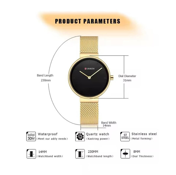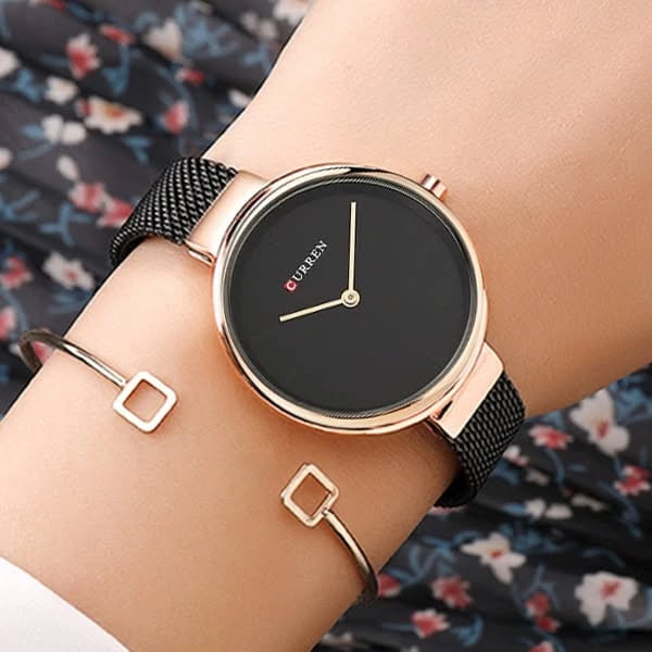 ساعت مچی زنانه کارن بند استیل حصیری CURREN 9016 ساعت اورجینال ضداب