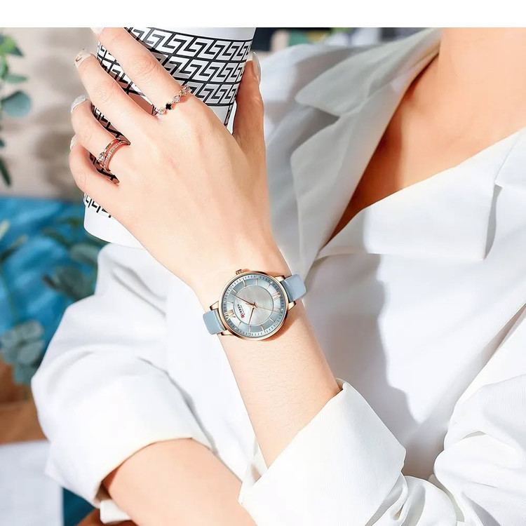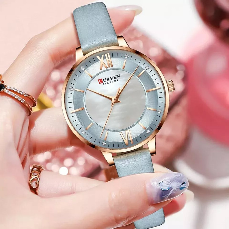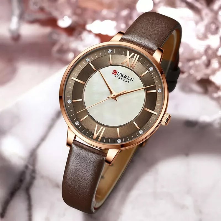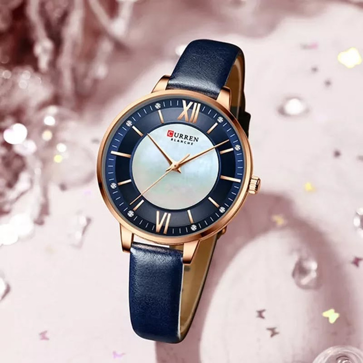 ساعت مچی زنانه کارن بند چرمی CURREN 9080 ساعت اورجینال ضداب