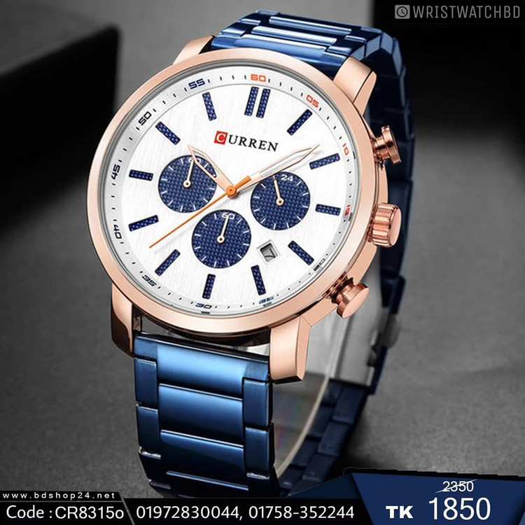 ### **مشخصات و ویژگیهای ساعت مچی مردانه CURREN 8315** **⌚ ساعتی شیک و جذاب مخصوص افراد خاصپسند** ✔ **سه موتور فعال** ✔ **فول تایم** (تمام عقربهها فعال) ✔ **نمایش ساعت ۲۴ ساعته** ✔ **دارای روزشمار** ✔ **کرنوگراف (Chronograph)** – قابلیت اندازهگیری زمان ✔ **قاب و بند فول استیل** – مقاوم و بادوام ✔ **رنگ ثابت** – مقاوم در برابر تغییر رنگ و زنگزدگی ✔ **شیشه کریستال ضدخش** – محافظت در برابر خط و خش ✔ **قطر صفحه:** ۴۷ میلیمتر – مناسب برای استایلهای اسپرت و رسمی ✔ **قفل استیل حکشده** – امنیت بالا و طراحی شیک ✔ **مقاومت در برابر آب:** **3ATM** (تحمل پاشش آب، مناسب برای شستوشوی دست، اما مناسب برای شنا نیست) ✔ **همراه با کارت گارانتی ۱ ساله** ✔ **جعبه اصلی CURREN** **یک انتخاب ایدهآل برای آقایان خوشسلیقه که به استایل و کیفیت اهمیت میدهند.**