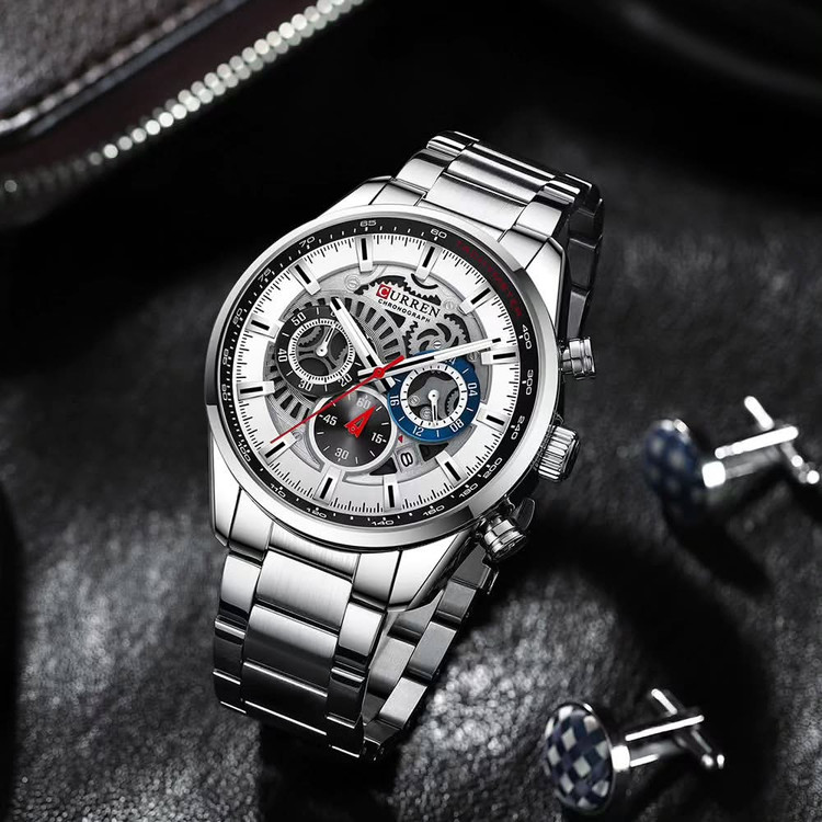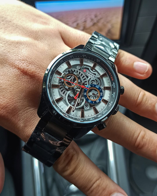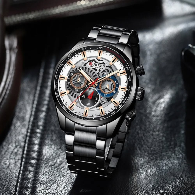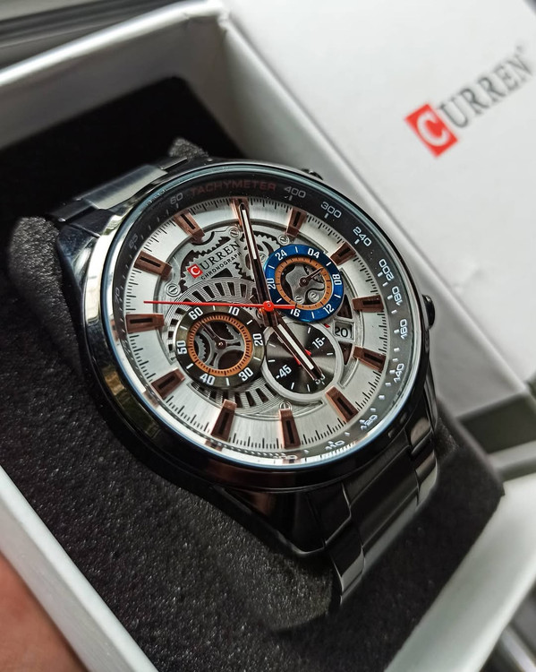 ساعت مچی مردانه CURREN مدل 8391 یک انتخاب شیک و کاربردی است. این ساعت دارای ویژگیهای زیر است: - **سه موتور فعال کورنوگراف**: این ویژگی به شما امکان میدهد تا از قابلیت کرنومتر بهرهمند شوید. - **نمایشگر تقویم**: برای نمایش تاریخ روزانه. - **بند استیل ضد زنگ**: بند این ساعت از جنس استیل ضد زنگ با کیفیت بالا ساخته شده است. - **قفل کلیپسی دو طرفه**: قفل این ساعت از نوع کلیپسی دو طرفه است که استفاده از آن را آسان میکند. - **قاب استیل ضد زنگ**: قاب این ساعت از جنس استیل ضد زنگ است که مقاومت بالایی دارد. - **مقاومت در برابر آب**: این ساعت تا عمق 30 متر در برابر آب مقاوم است. - **شیشه معدنی مقاوم در برابر خش**: شیشه این ساعت از جنس معدنی است که در برابر خش مقاوم است⁴⁵. این ساعت با طراحی مدرن و کیفیت ساخت بالا، گزینهای مناسب برای استفاده روزمره و همچنین مناسبتهای خاص است.