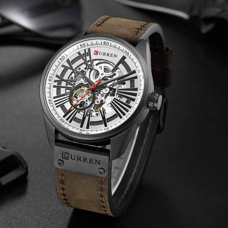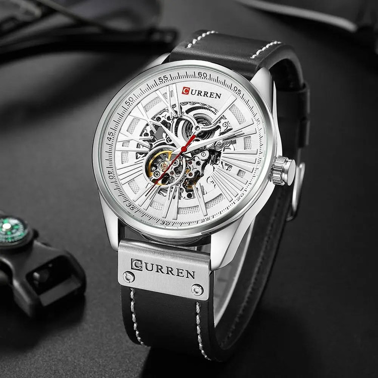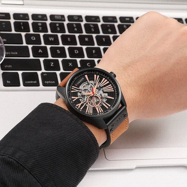 ساعت مچی مردانه کارن بند چرمی اتوماتیک CURREN 8299 ساعت اورجینال ضداب