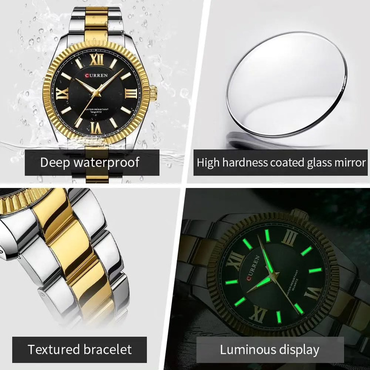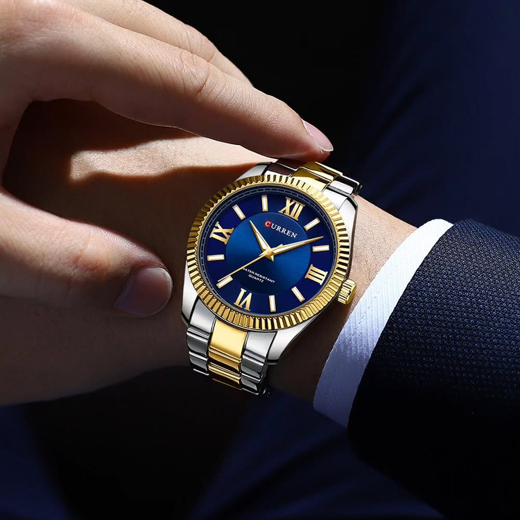### **نقد و بررسی ساعت مچی مردانه CURREN 8453** ساعت **CURREN 8453** یک انتخاب ایدهآل برای آقایانی است که به دنبال ترکیبی از **شیکپوشی، کیفیت و کارایی** هستند. این مدل با طراحی منحصربهفرد، متریال باکیفیت و عملکرد بینقص، یکی از گزینههای برتر در میان ساعتهای مچی مردانه به شمار میرود. #### **طراحی و ظاهر** CURREN 8453 با الهام از **طراحی کلاسیک و مدرن**، ظاهری **جذاب و لوکس** دارد. ترکیب رنگ **Silver-Gold & Blue** جلوهای خاص به ساعت داده و آن را به گزینهای ایدهآل برای استایلهای رسمی و روزمره تبدیل کرده است. **اعداد رومی** روی صفحه نمایش، حس اصالت و وقار را به طراحی ساعت اضافه کردهاند. #### **کیفیت ساخت و متریال** این ساعت از **فول استیل ضدزنگ** ساخته شده که علاوه بر دوام بالا، **مقاوم در برابر خط و خش و تغییر رنگ** است. شیشه **کریستال ضد خش و ضربه** نیز محافظت فوقالعادهای در برابر آسیبهای روزمره فراهم میکند. **قفل استیل حکشده** علاوه بر استحکام، جلوهای خاص به این ساعت بخشیده است. #### **عملکرد و ویژگیها** یکی از نکات برجستهی این مدل، **عقربهها و اعداد شبنما** است که خوانایی بالایی را در تاریکی فراهم میکند. قطر صفحه **۴۲ میلیمتر** اندازهای استاندارد و متناسب با مچ دست آقایان دارد. همچنین این مدل دارای **موتور باکیفیت و دقیق** با **گارانتی ۱ ساله** است که خیال شما را از بابت عملکرد بینقص آن راحت میکند. #### **مناسب برای چه کسانی؟** CURREN 8453 یک گزینه عالی برای **آقایان خوشپوش و علاقهمند به ساعتهای کلاسیک و لوکس** است. این ساعت به دلیل **رنگبندی متنوع (۵ رنگ جذاب)**، برای هر سلیقهای مناسب خواهد بود. همچنین با جعبه اورجینال خود، گزینهای فوقالعاده برای **هدیه دادن** محسوب میشود. ✅ **اگر به دنبال ساعتی باکیفیت، ماندگار و زیبا هستید، CURREN 8453 انتخابی هوشمندانه است!**