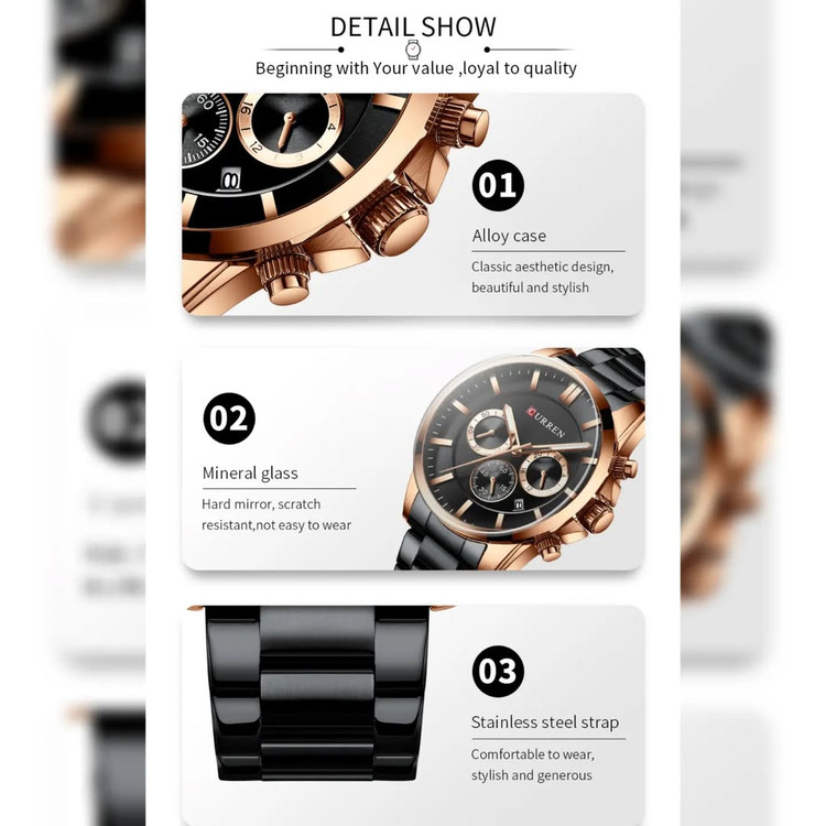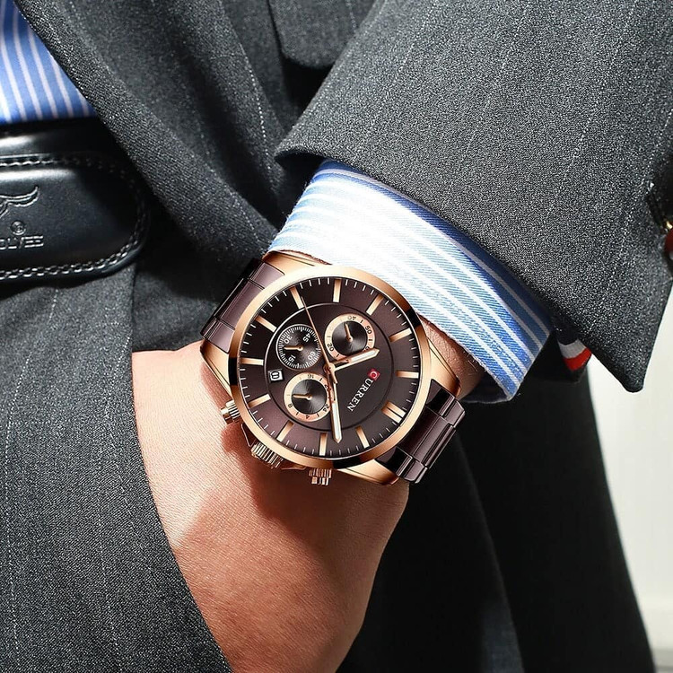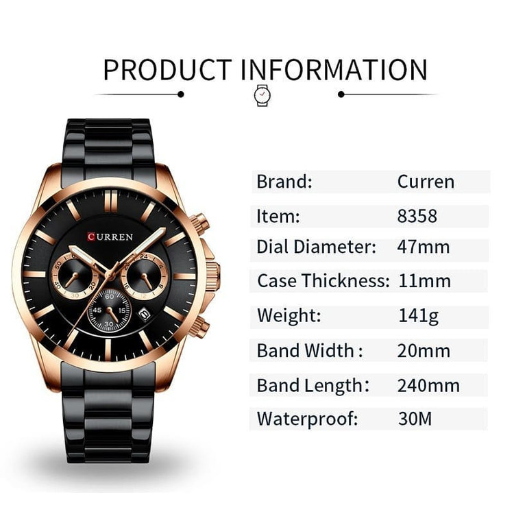 ### **نقد و بررسی ساعت مچی مردانه CURREN 8358 Gold** ساعت مچی مردانه **CURREN 8358 Gold** یکی از مدلهای خاص و لوکس این برند است که با طراحی مدرن و جذاب خود، توجه هر فرد خوشسلیقهای را جلب میکند. این ساعت علاوه بر زیبایی، از کیفیت ساخت بالایی برخوردار است و میتواند یک انتخاب ایدهآل برای استفاده روزمره یا استایلهای رسمی باشد. #### **طراحی و زیبایی** CURREN 8358 با طراحی **شیک، ساده و در عین حال چشمنواز**، جلوهای منحصربهفرد به استایل شما میبخشد. ترکیب **رنگ طلایی** با قاب و بند **فول استیل**، حس لوکس بودن را کاملاً منتقل میکند. صفحه نمایش بزرگ **۴۷ میلیمتری** باعث شده تا اعداد و عقربهها خوانایی بالایی داشته باشند. علاوه بر این، **عقربههای شبنما** امکان مشاهده ساعت را در نور کم فراهم میکنند. #### **کیفیت ساخت و متریال** این ساعت از **فول استیل ضد حساسیت** ساخته شده است که علاوه بر مقاومت بالا، حس راحتی را در طول استفاده به همراه دارد. **رنگ ثابت** و **شیشه ضدخش** از دیگر ویژگیهای بارز این مدل هستند که دوام و زیبایی ساعت را برای مدت طولانی تضمین میکنند. #### **امکانات و عملکرد** ساعت **CURREN 8358 Gold** تنها یک اکسسوری زیبا نیست، بلکه از لحاظ عملکرد نیز در سطح بالایی قرار دارد. این مدل دارای **سه موتور فعال و فول تایم** است که علاوه بر نمایش ساعت، امکانات **کرنومتر و روزشمار** را نیز در اختیار شما قرار میدهد. همچنین، با **مقاومت 3ATM در برابر آب**، خیالتان از بابت رطوبت و پاششهای جزئی آب راحت خواهد بود. #### **راحتی و امنیت** این ساعت دارای **قفل استیل حکشده** است که علاوه بر زیبایی، امنیت بالایی را برای جلوگیری از باز شدن ناگهانی بند فراهم میکند. وزن و طراحی آن به گونهای است که در طول روز بدون احساس خستگی روی مچ دست قرار میگیرد. #### **جمعبندی** CURREN 8358 Gold یک ساعت کامل برای آقایان خوشپوش است که به دنبال ترکیبی از **زیبایی، کیفیت و امکانات پیشرفته** هستند. طراحی لوکس، متریال باکیفیت، عملکرد دقیق و مقاومت در برابر آب، همگی این مدل را به یک انتخاب بینقص تبدیل کردهاند. این ساعت به همراه **جعبه اصلی برند CURREN و گارانتی ۱ ساله موتور** عرضه میشود تا خیال شما از کیفیت و دوام آن راحت باشد.