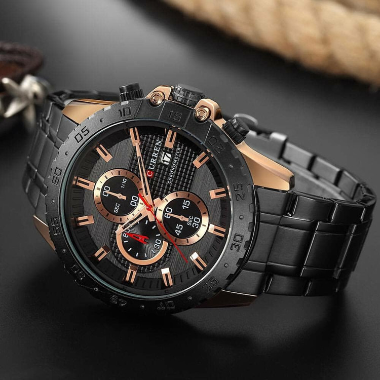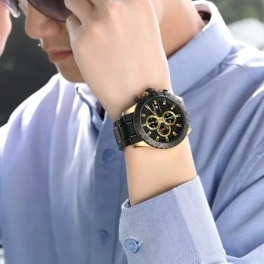 ### **نقد و بررسی ساعت مچی مردانه CURREN 8334** **⏳ زمان در تسخیر دستان شما** **CURREN 8334** یکی از بهترین مدلهای برند کارن، ترکیبی از طراحی مدرن، دوام بالا و عملکرد حرفهای است. این ساعت با جزئیات دقیق و ویژگیهای جذاب، برای آقایانی که به استایل، کیفیت و کارایی اهمیت میدهند، انتخابی ایدهآل محسوب میشود. ### **طراحی و ساختار** **CURREN 8334** با بدنهی فول استیل ضد زنگ و طراحی لوکس، حس قدرت و جذابیت را به استایل شما اضافه میکند. ترکیب رنگهای متنوع، از جمله مدل **black-gold**، جلوهای خاص و منحصربهفرد دارد که هم برای استفاده روزمره و هم برای موقعیتهای رسمی مناسب است. ### **ویژگیهای فنی و عملکرد** ✔ **موتور فعال و کرنوگراف حرفهای** این ساعت، دقت بالا و عملکردی بینقص را ارائه میدهد. کرنوگراف آن برای اندازهگیری زمانهای دقیق کاربردی است و نشانگر روزشمار نیز اطلاعات تقویمی را در دسترس شما قرار میدهد. ✔ **شیشه ضد ضربه و خش** این ویژگی باعث افزایش دوام و ماندگاری ساعت شده و جلوهی همیشه شفاف آن را حفظ میکند. ✔ **مقاومت در برابر آب تا 30 متر** این ساعت را برای استفاده روزمره و مواجهه با رطوبت، مانند شستشوی دست یا باران، ایدهآل میسازد. ✔ **قفل اصلی و رنگ ثابت** امنیت بالا در استفاده و عدم تغییر رنگ در طول زمان، این مدل را به گزینهای عالی برای استفاده طولانیمدت تبدیل میکند. ### **جمعبندی** **CURREN 8334** با طراحی شیک، موتور قدرتمند، مقاومت بالا و امکانات حرفهای، یک گزینه ایدهآل برای آقایان شیکپوش است. ترکیب کیفیت و زیبایی در این مدل، آن را به یکی از بهترین انتخابها در دنیای ساعتهای مچی تبدیل کرده است.