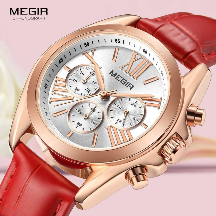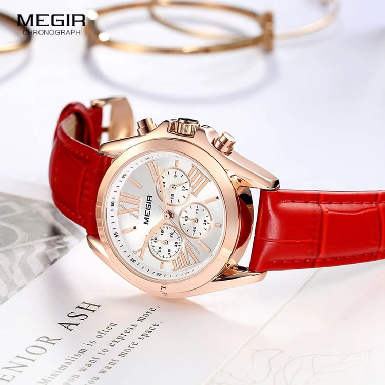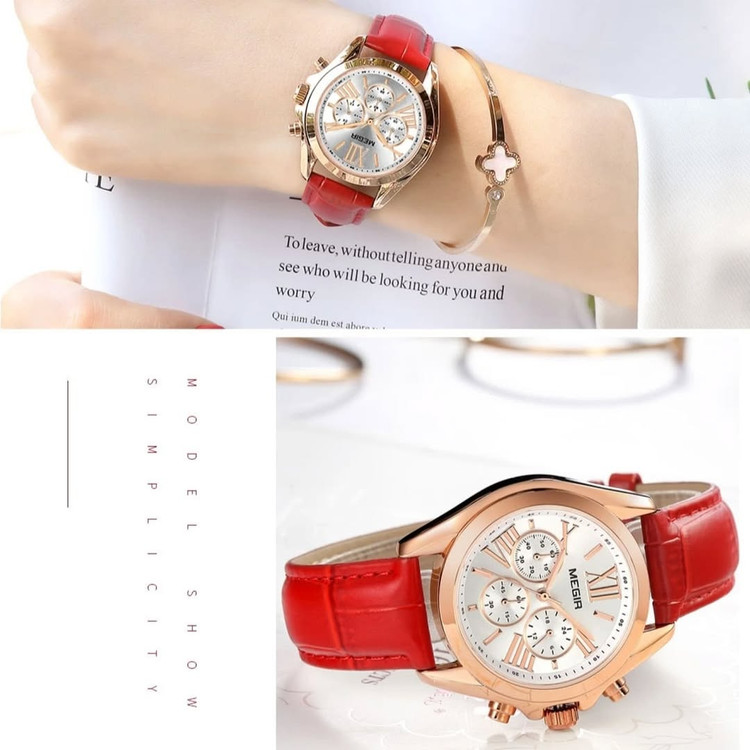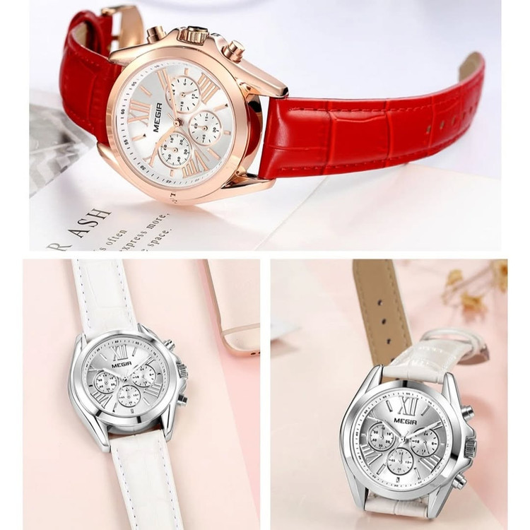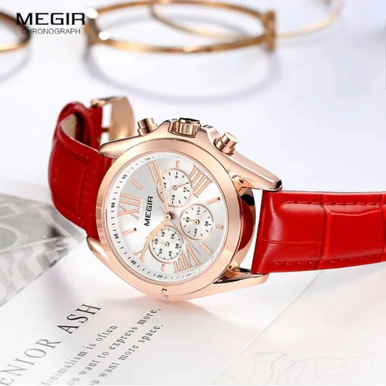 ساعت مچی زنانه مگیر بند چرمی MEGIR 2114 ساعت اورجینال ضداب