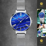 ساعت مچی زنانه کارن بند استیل حصیری CURREN 9076 ساعت اورجینال ضداب