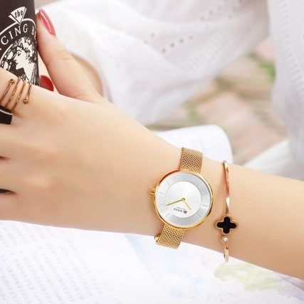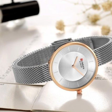 ساعت مچی زنانه کارن بند استیل حصیری CURREN 9030 ساعت اورجینال ضداب