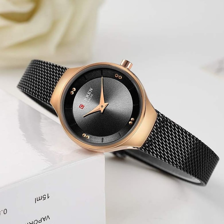 ساعت مچی زنانه کارن بند استیل حصیری CURREN 9028 ساعت اورجینال ضداب