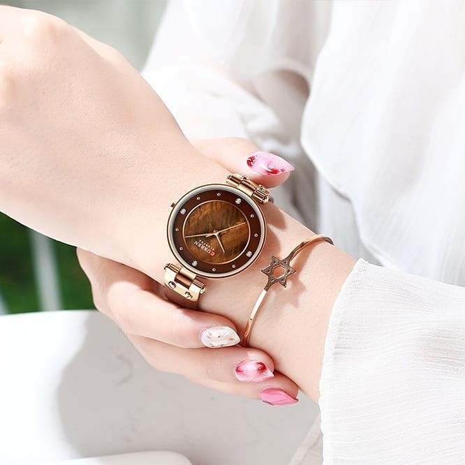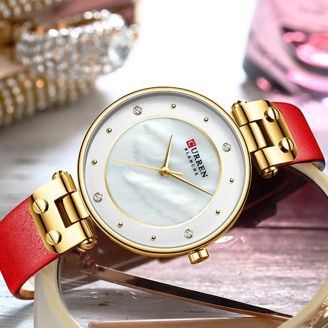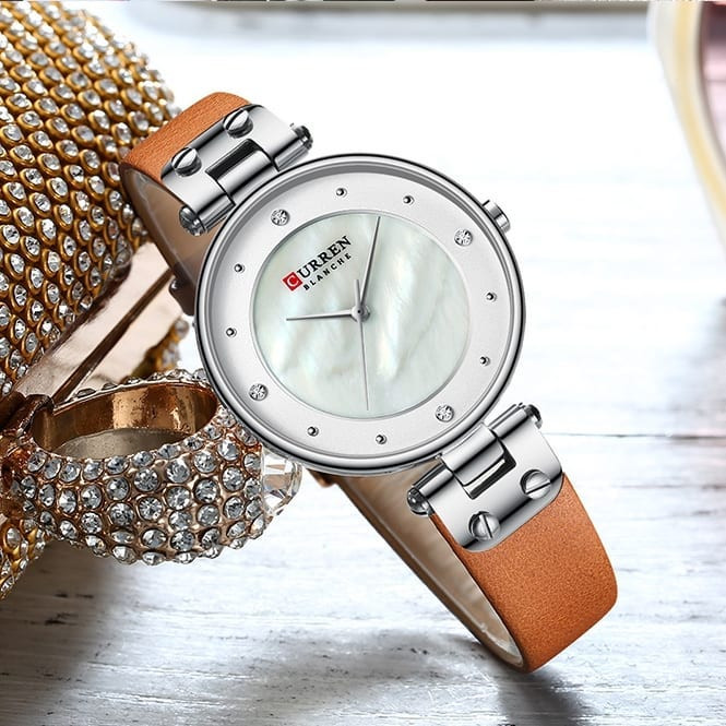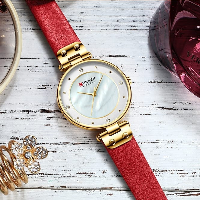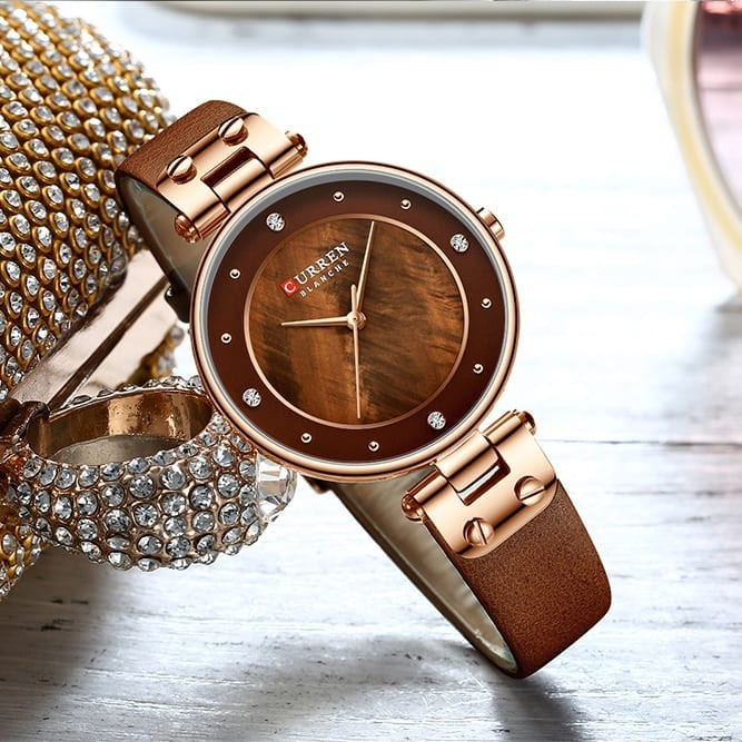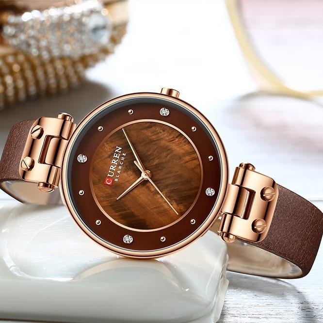 ساعت مچی زنانه کارن بند چرمی CURREN 9056 ساعت اورجینال ضداب