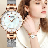 ساعت مچی زنانه کارن بند استیل حصیری CURREN 9056 ساعت اورجینال ضداب