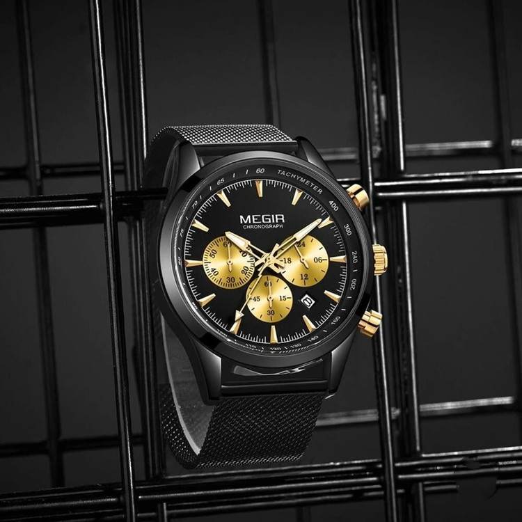 ساعت مچی مردانه مگیر بند استیل حصیری MEGIR 2153 ساعت اورجینال ضداب