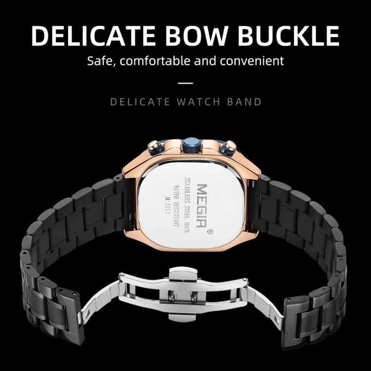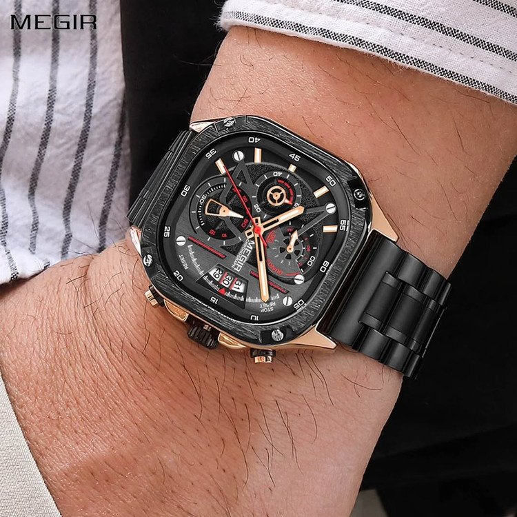 ⌚️ نقد و بررسی ساعت مچی مردانه MEGIR 2217 **ترکیب طراحی جسورانه با امکانات کاربردی** **MEGIR 2217** یکی از مدلهای متفاوت و خاص برند محبوب مگیر است که در نگاه اول با **صفحه مربعی و طراحی منحصربهفردش** توجه را جلب میکند. این مدل برای کسانی ساخته شده که به دنبال ساعتهای تکراری نیستند و استایلی متفاوت و خاص را میپسندند. #### ✅ طراحی و ظاهر ظاهر این ساعت قطعاً از نقاط قوت اصلی آن است. صفحه مربعی با ترکیب دقیق رنگها و نمایشگرهای کرنوگراف، جلوهای اسپرت و در عین حال لوکس به آن داده. بند استیل با رنگ ثابت و طراحی خوشفرم، حس حرفهای بودن را به ساعت اضافه میکند. قفل کلیپسی دو طرفه نیز هم امنیت بالایی دارد و هم به راحتی باز و بسته میشود. #### ✅ عملکرد و امکانات MEGIR 2217 فقط زیبا نیست، از نظر فنی هم حرفهای زیادی برای گفتن دارد: * **سه موتور فعال واقعی** عملکرد دقیق را تضمین میکنند. * **کرنوگراف و کرنومتر کاربردی** برای زمانسنجی حرفهای. * **نمایش تاریخ (روزشمار)** که همیشه بهدرد میخورد. * **ضدآب تا عمق 30 متر (3ATM)**؛ مناسب برای شستوشوی دست یا باران. #### ✅ کیفیت ساخت شیشه ضد خش، بند فلزی مقاوم و خاصیت ضد حساسیت، باعث میشود ساعت برای استفاده روزمره یا حتی شرایط سخت هم کاملاً مناسب باشد. این مدل همراه با **جعبه اصلی برند MEGIR** و **گارانتی یکساله موتور** ارائه میشود، که خیال شما را از بابت کیفیت راحت میکند. #### ✅ تنوع رنگ وجود ۴ رنگ جذاب از این مدل، انتخاب را برای انواع سلیقهها آسان کرده. چه دنبال رنگ کلاسیک مشکی باشید، چه نقرهای یا ترکیبیهای اسپرت، MEGIR 2217 شما را راضی خواهد کرد. --- ### 🔚 جمعبندی اگر به دنبال ساعتی هستید که هم از نظر طراحی متفاوت باشد، هم امکانات کاملی داشته باشد و هم از کیفیت ساخت بالایی برخوردار باشد، **MEGIR 2217** یکی از بهترین انتخابها در بازه قیمتی خودش است. مناسب استفاده روزمره، استایل اسپرت یا حتی رسمی. 💬 امتیاز ما به این ساعت: **9 از 10**