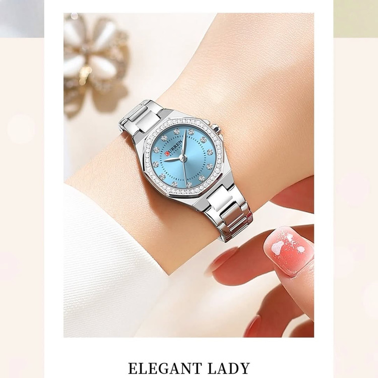 ساعت مچی زنانه کارن بند استیل CURREN 9100 ساعت اورجینال ضداب