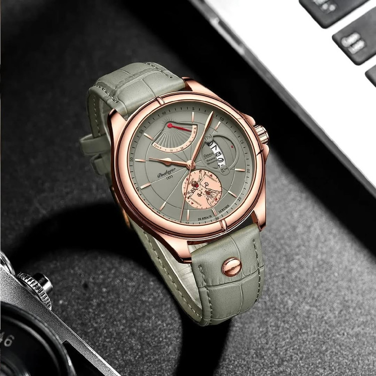 ساعت مچی مردانه پودگار بندچرمی Poedagar 802 ساعت اورجینال ضداب