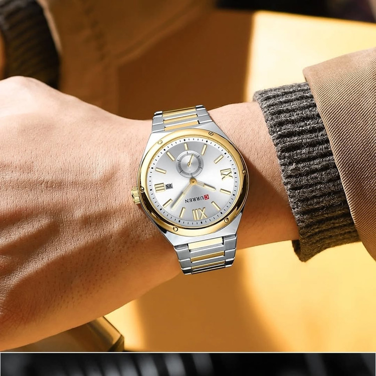 ## ⌚ نقد و بررسی ساعت مردانه CURREN 8471 ### طراحی و ظاهر CURREN 8471 با طراحی مدرن و جذابش یکی از ساعتهایی است که بهمحض بستن روی دست، جلب توجه میکند. قاب با کیفیت از آلیاژ روی (zinc) و بند استیل براق، حس یک ساعت لوکس را به شما منتقل میکند. اعداد رومی کلاسیک در کنار طراحی زیرثانیه، جلوهای خاص و متفاوت به صفحه ساعت دادهاند. وجود عقربهها و اعداد شبنما نیز باعث میشود حتی در تاریکی شب، بتوانید ساعت را به راحتی بخوانید. قطر ۴۲ میلیمتری صفحه هم انتخابی ایدهآل برای بیشتر مچهای مردانه است؛ نه خیلی بزرگ و نه خیلی کوچک. --- ### کیفیت ساخت بدنه و بند استیل این مدل از کیفیت خوبی برخوردارند و رنگ آن ثابت است، بنابراین نگرانی بابت تغییر رنگ یا کدر شدن در طول زمان نخواهید داشت. همچنین ضد حساسیت بودن آن برای کسانی که پوست حساسی دارند، یک مزیت بزرگ بهشمار میرود. شیشه کریستال ضد خش و مقاوم در برابر ضربه، دوام بیشتری برای استفاده روزمره فراهم میکند و قفل استیل حک شده با برند CURREN، ظرافت و کیفیت کار را تکمیل میکند. --- ### امکانات CURREN 8471 علاوهبر نمایش ساعت، مجهز به روزشمار و طراحی زیبای زیرثانیه است که کارایی و زیبایی را با هم ترکیب کرده است. وجود ۶ رنگ خاص، دست شما را برای انتخاب باز میگذارد تا متناسب با استایل یا سلیقهتان، بهترین رنگ را انتخاب کنید. --- ### نقاط قوت: ✅ طراحی مدرن و شیک با اعداد رومی و زیرثانیه ✅ بند استیل با کیفیت و رنگ ثابت ✅ عقربه و اعداد شبنما ✅ شیشه ضد خش و مقاوم ✅ قیمت اقتصادی نسبت به کیفیت ✅ گارانتی ۱ ساله موتور ### جمعبندی اگر بهدنبال یک ساعت با طراحی خاص، کیفیت خوب و قیمت مقرونبهصرفه هستید، **CURREN 8471** یکی از بهترین گزینههای موجود در بازار است. این ساعت برای استفاده روزمره و همچنین استایلهای رسمی و نیمهرسمی انتخابی هوشمندانه است.