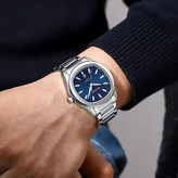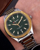 طراحی و کیفیت ساخت ساعت **CURREN 8474** با استفاده از قاب آلیاژ روی (Zinc Alloy) و بند استیل، ساختاری محکم و مقاوم دارد. این ترکیب باعث شده ساعت هم سبک باشد و هم دوام خوبی داشته باشد. رنگ ثابت بند و قاب نیز از جمله نکات مثبت این ساعت است که باعث میشود ظاهر ساعت با گذر زمان تغییر نکند و همیشه شیک باقی بماند. همچنین، قفل استیل حکشده، امنیت و زیبایی را در کنار هم ارائه میدهد. ### امکانات و عملکرد این مدل علاوه بر نمایش زمان، مجهز به روزشمار است که کارایی ساعت را افزایش میدهد. اعداد و عقربههای شبنما، یک مزیت مهم برای استفاده در نور کم و محیطهای تاریک به شمار میروند. شیشه کریستال مقاوم در برابر خش و ضربه، از آسیبهای روزمره جلوگیری میکند و دوام ساعت را تضمین میکند. ### ابعاد و سایز قطر صفحه ۴۲ میلیمتر، سایز استانداردی است که برای اغلب مچهای مردانه مناسب است؛ نه خیلی بزرگ و نه خیلی کوچک، بنابراین میتواند انتخاب راحتی برای اکثر افراد باشد. ### راحتی و استفاده روزانه ساعت ضد حساسیت است که برای افرادی با پوست حساس گزینه مناسبی محسوب میشود. بند استیل و وزن متعادل ساعت نیز به راحتی استفاده روزمره کمک میکند. ### نکات منفی * موتور ساعت، اگرچه یک سال گارانتی دارد، ولی برند CURREN عموما موتورهای ژاپنی یا سوئیسی معتبر را استفاده نمیکند، پس ممکن است در بلندمدت دقت کمتری نسبت به برندهای مطرح داشته باشد. * عدم وجود ویژگیهای پیشرفتهتر مثل کرونوگراف، مقاومت آب بالا یا قابلیتهای هوشمند، باعث میشود این ساعت بیشتر در دسته ساعتهای کلاسیک و روزمره قرار گیرد. ### جمعبندی **CURREN 8474** یک ساعت مچی مردانه با طراحی جذاب و کیفیت ساخت مناسب است که بیشتر برای افرادی که دنبال ظاهری شیک و کاربردی با قیمت مقرون به صرفه هستند، توصیه میشود. اگر به دنبال ساعت لوکس با امکانات پیشرفته نیستید و میخواهید یک گزینه قابل اعتماد و زیبا داشته باشید، این مدل ارزش بررسی دارد.