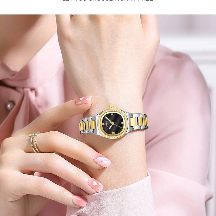 ساعت مچی زنانه CURREN 9101، یکی از جدیدترین مدلهای این برند، با طراحی شیک و خاص، همان چیزی است که دستان شما لایق آن هستند. این ساعت با ویژگیهایی خاص و جذاب خود، هر خانمی را مجذوب میکند: 1. قاب آلیاژ روی (Zinc): طراحی محکم و مقاوم با متریالی که علاوه بر استحکام، ظاهری لوکس به ساعت میبخشد. 2. بند استیل: بند استیل این ساعت علاوه بر زیبایی، راحتی و دوام را برای استفاده طولانی مدت به ارمغان میآورد. 3. رنگ ثابت: رنگ این ساعت ثابت و ماندگار است، به طوری که پس از مدتها استفاده، همچنان جذاب و بینقص باقی میماند. 4. ضد حساسیت: هیچ نگرانی بابت واکنشهای حساسیتزا ندارید. طراحی این ساعت به گونهای است که حتی برای پوستهای حساس هم مناسب است. 5. شیشه کریستال ضدخش: شیشه کریستالی این ساعت، علاوه بر جلوهای زیبا، مقاوم در برابر خش و آسیب است. 6. دور قاب نگین اتم: برای کسانی که به جزئیات ظریف اهمیت میدهند، دور قاب این ساعت با نگینهای اتمی تزئین شده است که درخششی خاص به ساعت میبخشد. 7. قفل استیل حک شده: قفل استیل به صورت دقیق و حکاکیشده طراحی شده تا امنیت و زیبایی را همزمان به همراه داشته باشد. 8. قطر صفحه ۲۵ میلیمتر: قطر صفحه ساعت متناسب با ظرافت دستان شما، طراحی شده تا جذابیت را دوچندان کند. 9. ضد آب ۳۰ متر: این ساعت برای استفاده در شرایط مختلف، حتی در تماس با آب، مقاوم است. 10. همراه با جعبه اصلی: همراه با جعبهای شیک و لوکس که میتواند هدیهای بینظیر باشد. 11. گارانتی ۱ ساله موتور: ساعت با گارانتی یک ساله موتور، اطمینان از کیفیت و دوام آن را برای شما به ارمغان میآورد. این ساعت در ۴ رنگ زیبا ارائه میشود که هرکدام از آنها میتوانند به استایل شما جلا ببخشند. هر زمان که به آن نگاه کنید، خواهید دید که این ساعت بیشتر از یک ابزار برای نشان دادن زمان است؛ این یک اثر هنری است که همیشه در دستان شما خواهد درخشید.