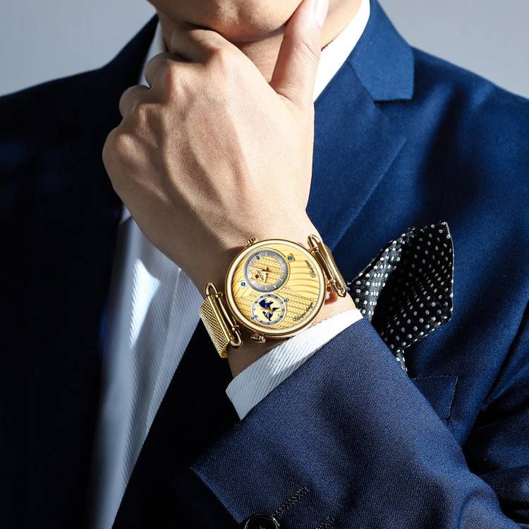 ⌚ نقد و بررسی REWARD 62002 VIP – ترکیب شیک بودن و هوشمندی وقتی صحبت از یک ساعت مردانه خاص میشود، REWARD 62002 VIP دقیقاً همان مدلی است که نگاهها را به خودش قفل میکند. اولین چیزی که نظر شما را جلب میکند، طراحی چشمنواز بند حصیری استیل ریزبافت است؛ نهتنها فوقالعاده راحت روی مچ مینشیند، بلکه حس یک اکسسوری لوکس و گرانقیمت را منتقل میکند. رنگ ثابت این بند، باعث میشود حتی بعد از سالها استفاده، همچنان مثل روز اول بدرخشد. اما ماجرا فقط به ظاهر ختم نمیشود... این ساعت با قابلیت دوآل تایم (Dual Time) به شما اجازه میدهد همزمان دو ساعت مختلف را داشته باشید؛ ایدهآل برای مردان اهل سفر یا کسانی که با کشور دیگری در ارتباطاند. روزشمار، قاب آلیاژ ضد حساسیت، شیشه ضد خش و قفل استیل حکشده همه نشان میدهد که REWARD کوچکترین جزئیات را فراموش نکرده است. همچنین با مقاومت 3ATM، خیالتان از بابت پاشش آب یا شستوشوی دست راحت خواهد بود. در نهایت، با جعبه اصلی برند و گارانتی ۱ ساله موتور، این ساعت نهتنها یک خرید مطمئن، بلکه یک سرمایهگذاری روی استایل شماست. 💎 نتیجهگیری: اگر به دنبال ساعتی هستید که هم کلاسیک باشد، هم مدرن، و هم کاربردی، REWARD 62002 VIP دقیقاً همان چیزی است که باید روی مچتان باشد.