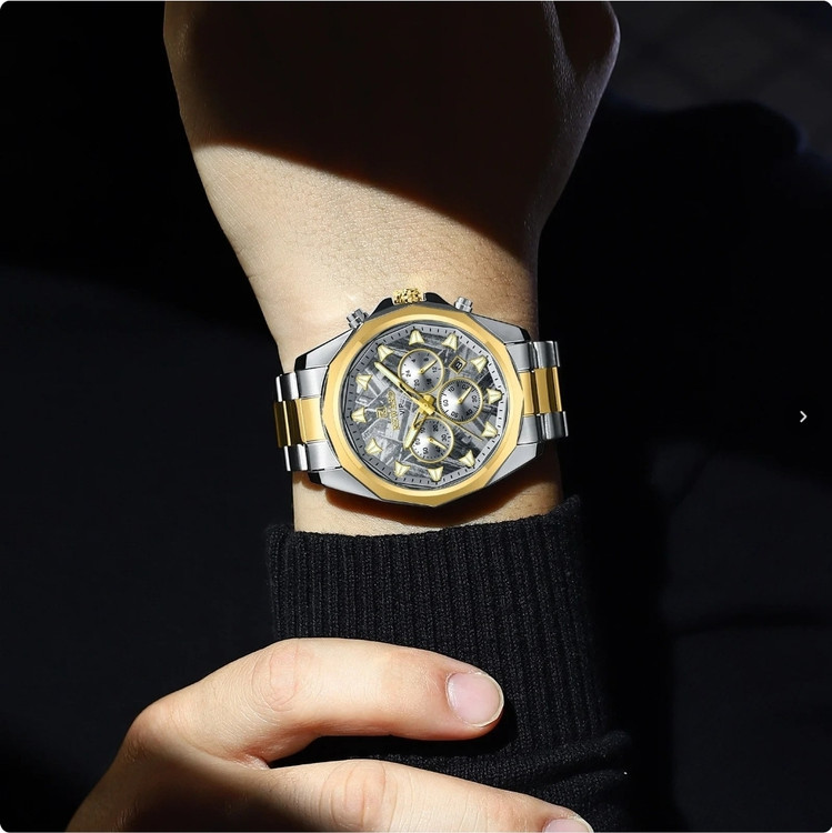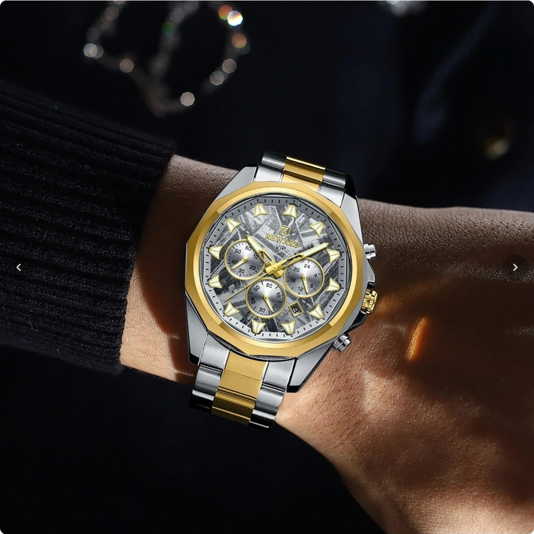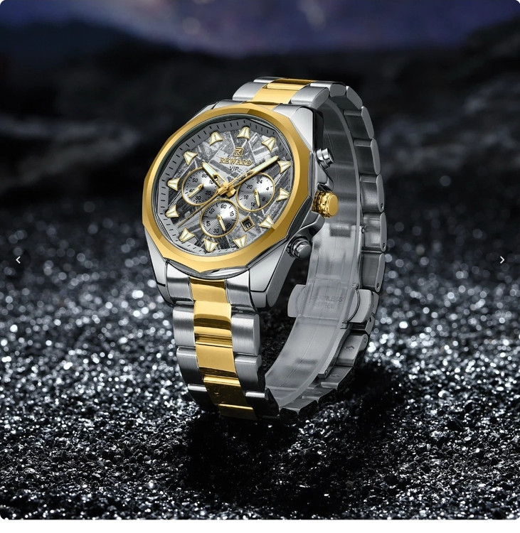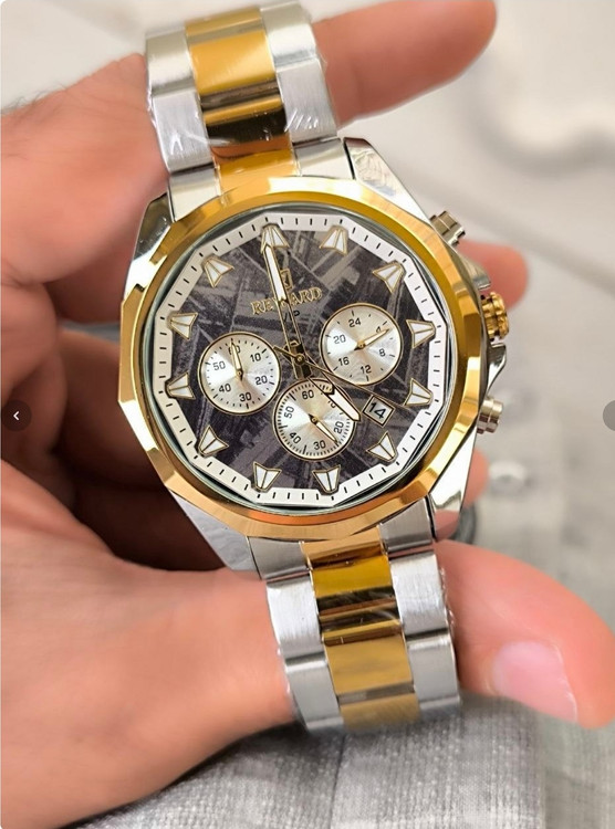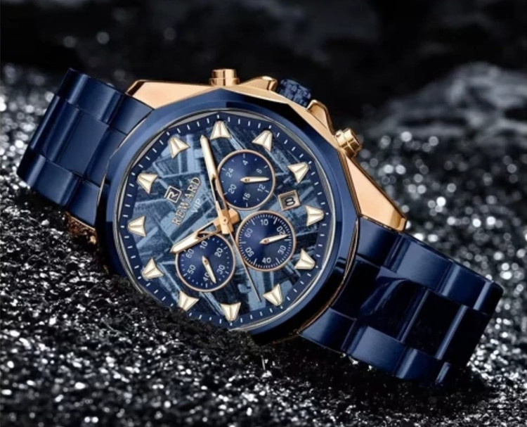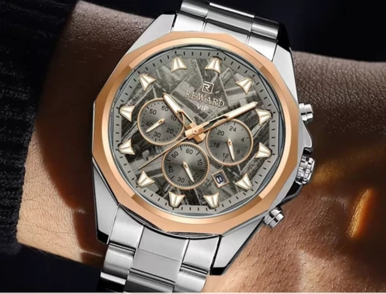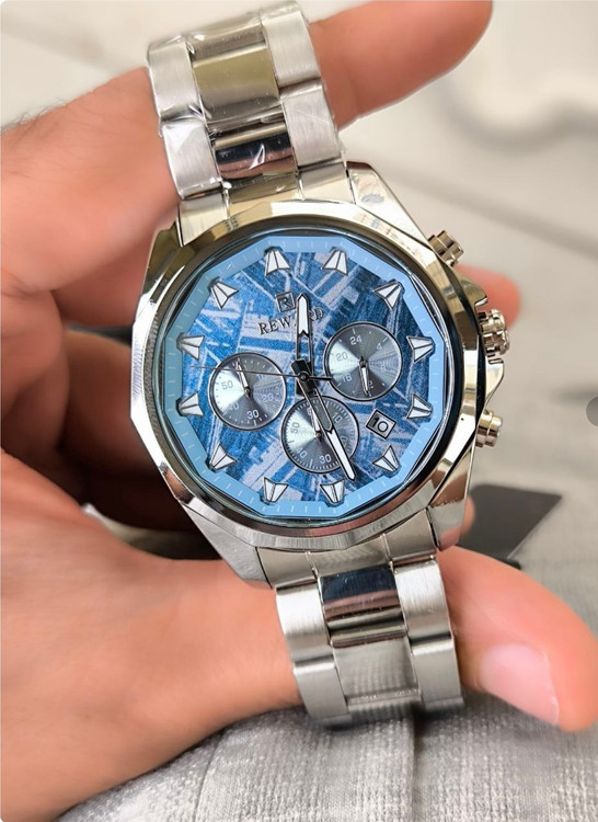 ⌚ نقد و بررسی ساعت مردانه REWARD 812052 طراحی و ظاهر: در نگاه اول، چیزی که توجه هر کسی رو جلب میکنه، رنگ خاص و چشمنواز آبی تیفانی این ساعت هست. ترکیب قاب آلیاژی ضد حساسیت و بند تمام استیل با قفل مخفی دوطرفه، ظاهر ساعت رو همزمان لاکچری و اسپرت کرده و برای استایل روزمره یا رسمی کاملاً مناسبش میکنه. کیفیت ساخت: بدنه و بند استیل با رنگ ثابت، حس استحکام و ماندگاری بالایی به کاربر میده. شیشه ضد خش باعث میشه ساعت حتی بعد از استفاده طولانی مدت همچنان براق و سالم بمونه. امکانات و قابلیتها: این مدل فقط یک ساعت ساده نیست؛ بلکه با داشتن سه موتور فعال، نشانگر 24 ساعته، کرنومتر دقیق و تقویم روز شمار به یک ابزار کامل برای استفاده روزانه تبدیل شده. علاوه بر این، عقربهها و اعداد شبنما خوانایی عالی حتی در تاریکی فراهم میکنن. مقاومت در برابر آب: مجهز به استاندارد 3ATM هست که در برابر پاشش آب، شستن دستها و رطوبت روزمره مقاومه، اما برای شنا و غواصی مناسب نیست. گارانتی و اصالت: این ساعت با یک سال گارانتی موتور و جعبه اورجینال عرضه میشه که خیال شما رو از بابت اصالت و کیفیت راحت میکنه. ✅ جمعبندی: ساعت مچی مردانه REWARD 812052 یک انتخاب ایدهآل برای آقایانیه که به دنبال ترکیبی از طراحی خاص، امکانات کاربردی و کیفیت بالا هستند. این مدل با رنگ منحصر به فردش، به راحتی میتونه استایل شما رو متمایز کنه و در هر جمعی بدرخشه.