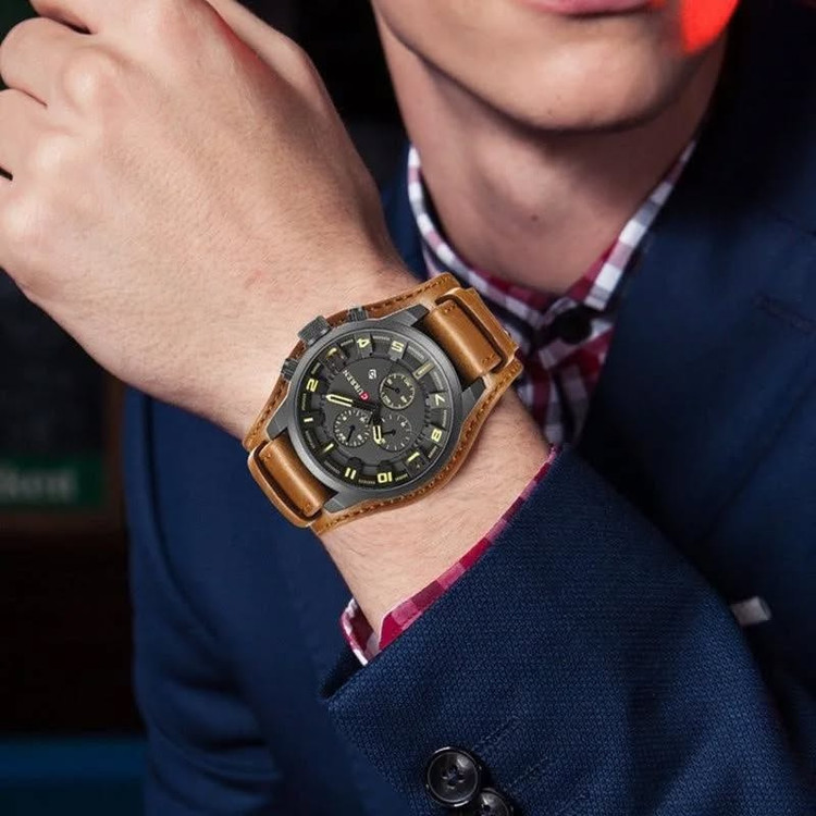 ساعت مچی مردانه CURREN 8225 انتخابی شیک و حرفهای برای آقایانی است که به دنبال خرید ساعت اورجینال و لوکس هستند. این مدل از برند معتبر CURREN با طراحی سه موتور نمایشی (طرح کرنوگراف) جلوهای قدرتمند و اسپرت ایجاد کرده و در کنار بند چرمی درجه یک دور دوخت، استایلی کلاسیک و جذاب ارائه میدهد. قاب استیل مقاوم با رنگ ثابت و خاصیت ضدحساسیت، همراه با شیشه معدنی تقویتشده ضدخش، کیفیت و دوام بالای این ساعت را تضمین میکند.
