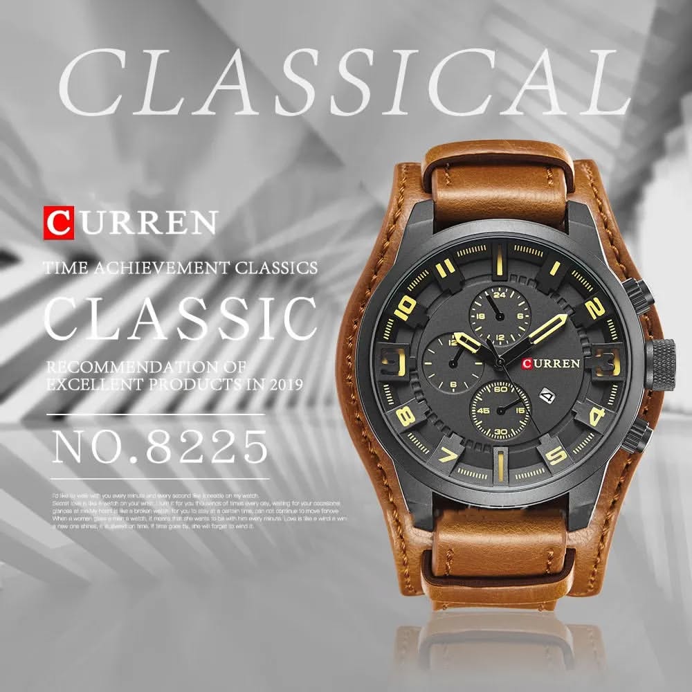 ساعت مچی مردانه کارن مدل CURREN 8225 اورجینال بند چرمی ضدآب