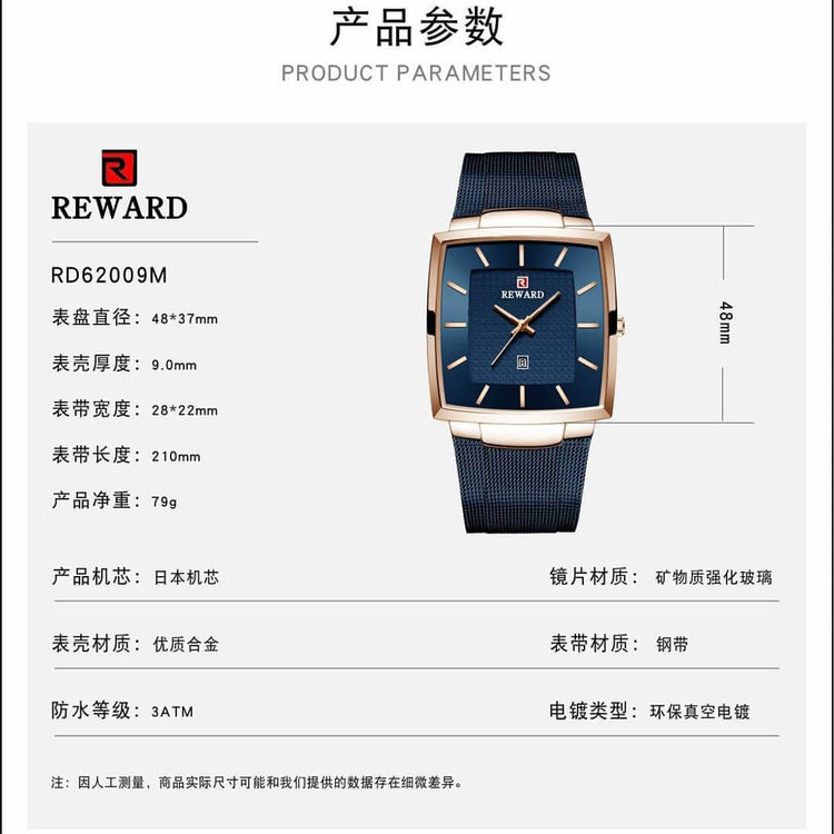 🕰️ نقد و بررسی ساعت مچی مردانه ریوارد مدل REWARD 62009 طراحی و ظاهر ساعت REWARD 62009 با طراحی صفحه مربعی کلاسیک، حس اصالت و خاص بودن را به کاربر منتقل میکند. این نوع طراحی کمتر در ساعتهای مردانه دیده میشود و همین موضوع باعث میشود روی دست جلوهای متفاوت و چشمگیر داشته باشد. بند حصیری استیل ریزبافت نیز ظاهری ظریف و مدرن ایجاد کرده که علاوه بر زیبایی، راحتی بالایی روی مچ دست دارد. کیفیت ساخت قاب ساعت از آلیاژ ضدحساسیت ساخته شده تا حتی در استفاده طولانیمدت، هیچگونه حساسیت پوستی ایجاد نکند. شیشه ضدخش و رنگ ثابت نیز باعث میشوند ساعت پس از مدتها استفاده همچنان ظاهر اولیه خود را حفظ کند. قفل استیل حکشده هم حس اصالت برند را القا میکند و استحکام بالایی دارد. امکانات و قابلیتها این مدل علاوه بر نمایش زمان، دارای روزشمار است که کاربرد روزمره را افزایش میدهد. همچنین با داشتن مقاومت در برابر آب تا 3ATM، در برابر رطوبت، شستوشوی دست و تعریق کاملاً ایمن است. تنوع و انتخاب ساعت REWARD 62009 در ۵ رنگ جذاب عرضه شده و این امکان را میدهد تا هر فرد با توجه به سلیقه و استایل شخصی خود، رنگ مورد نظر را انتخاب کند. ارزش خرید با توجه به طراحی خاص، کیفیت ساخت بالا، امکانات کاربردی و همراهی با جعبه اصلی برند و گارانتی یکساله موتور، این ساعت ارزش خرید بسیار بالایی دارد. REWARD 62009 نه تنها یک ساعت، بلکه یک اکسسوری لوکس و ماندگار است که استایل شما را تکمیل میکند. ✅ جمعبندی: اگر به دنبال یک ساعت مردانه هستید که هم طراحی متفاوت داشته باشد و هم کیفیت ساخت و امکانات مطلوب، REWARD 62009 انتخابی هوشمندانه است. این ساعت بهخوبی میتواند همراه همیشگی شما در موقعیتهای رسمی و روزمره باشد.
