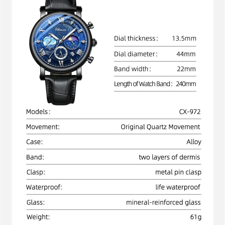 ساعت مچی مردانه چنکسی بند چرمی CHENXI 972 ساعت اورجینال ضدآب