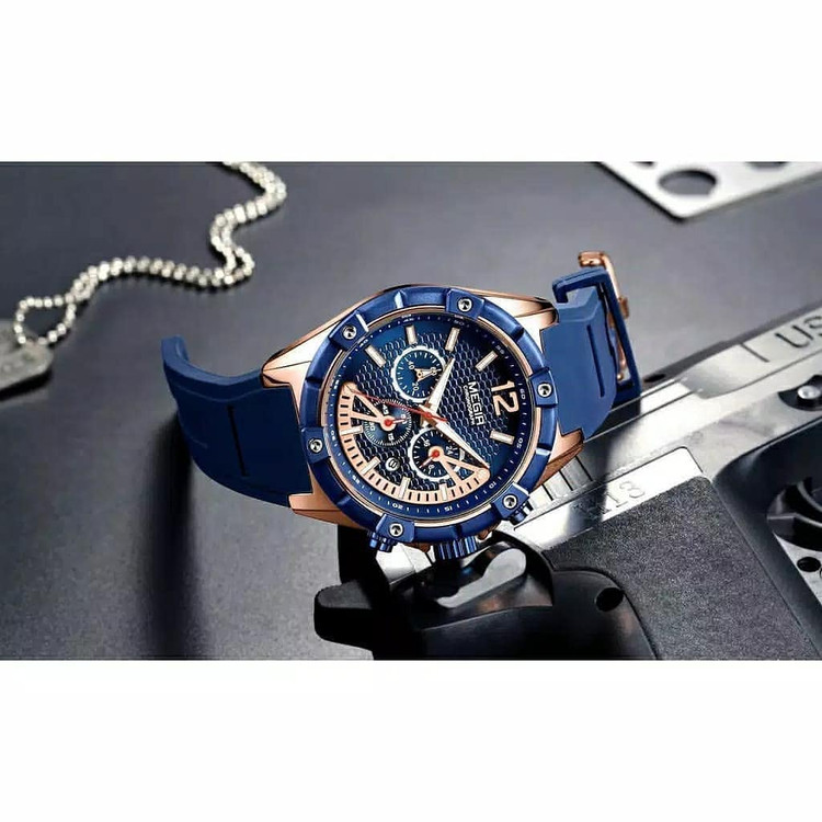 ساعت مچی مردانه مگیر بند سیلیکونی MEGIR 2083 ساعت اورجینال ضدآب