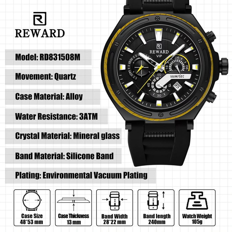 ساعت مچی مردانه ریوارد بند سیلیکونی REWARD 831508 ساعت اورجینال ضدآب