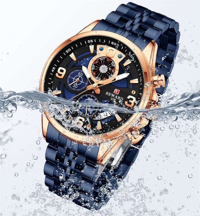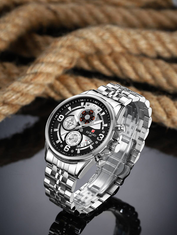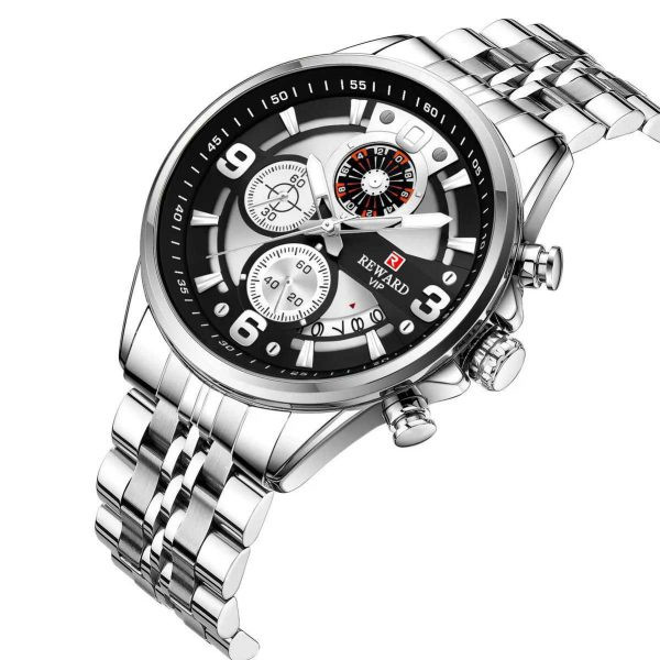 ساعت مردانه REWARD 81057 ترکیبی عالی از زیبایی، کیفیت و عملکرد حرفهای است. انتخابی مناسب برای افرادی که به دنبال ساعتی شیک، مقاوم و با امکانات کاربردی هستند و در عین حال مایل به داشتن محصولی با برند معتبر و گارانتی مطمئن میباشند.