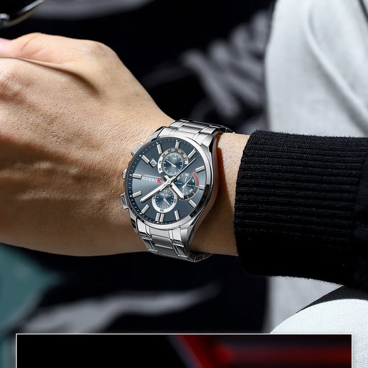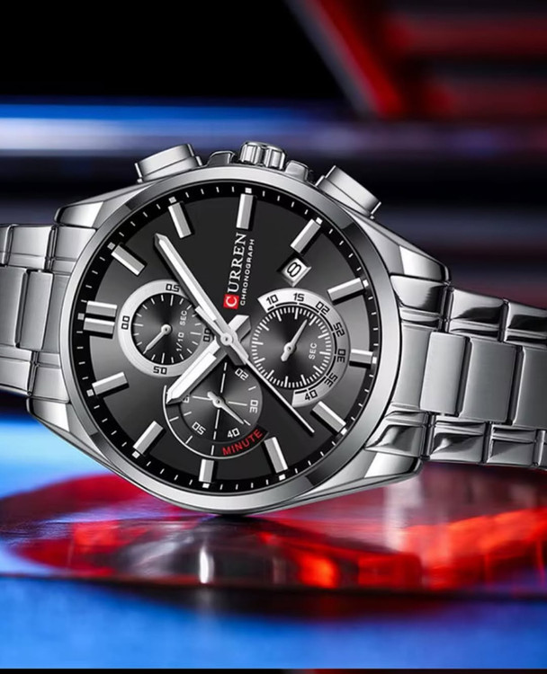 ساعت مچی CURREN 8475 یکی از محبوبترین مدلهای مردانه برند کارن است؛ مدلی که با طراحی لوکس، بدنه مقاوم، بند استیل، سه موتور فعال REAL و امکانات حرفهای مانند کرنوگراف، کرنومتر و روزشمار، توانسته به انتخابی پرفروش در بین ساعتهای میانرده تبدیل شود. این ساعت ترکیبی از زیبایی، دقت، استحکام و حس لاکچری است و برای آقایانی طراحی شده که به ظاهر و کیفیت اهمیت ویژهای میدهند. در ادامه نقد و بررسی کامل این ساعت را از نظر طراحی، کیفیت ساخت، عملکرد و ارزش خرید مرور میکنیم.