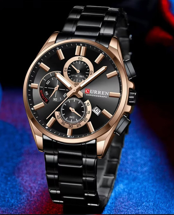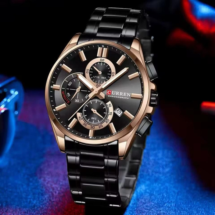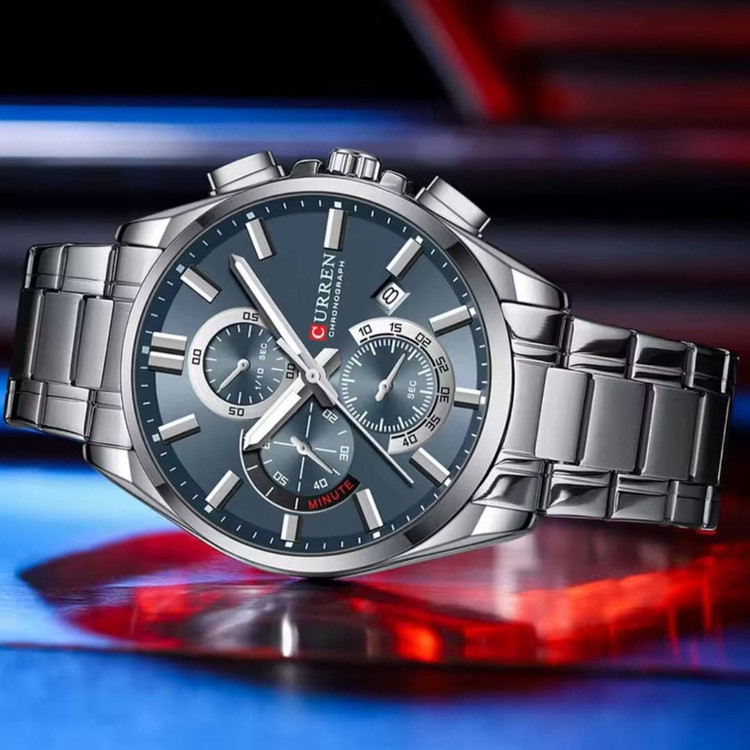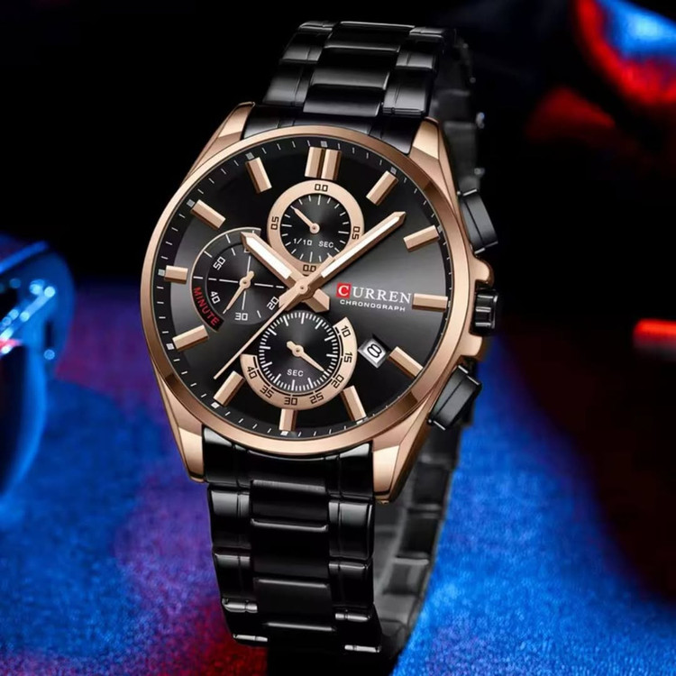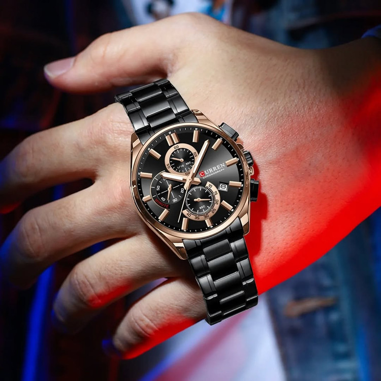جزئیات فوقالعاده ظریف در طراحی صفحه، بند استیل مقاوم، عملکرد دقیق کرنوگراف و رنگبندی لوکس باعث شده CURREN 8475 نه فقط یک ساعت، بلکه یک اکسسوری تمامعیار و جذاب برای مردان خوشتیپ باشد. اگر به دنبال ساعتی هستید که هم در مراسمها بدرخشد و هم در استفاده روزانه همراه قابلاعتماد شما باشد، این مدل بهترین انتخاب شماست.