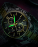 بند استیل این مدل بهصورت استاندارد طراحی شده و کاملاً روی دست مینشیند. وزن ساعت متعادل است؛ نه آنقدر سبک که حس ارزش را منتقل نکند و نه آنقدر سنگین که در استفاده طولانی اذیتکننده باشد. همچنین عقربههای شبنما امکان دید در تاریکی را فراهم میکنند.