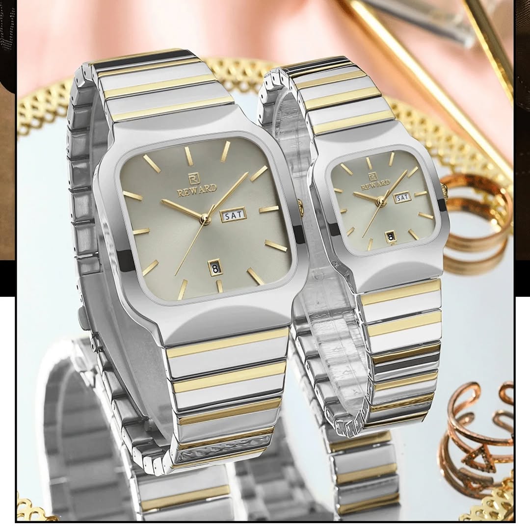 ست زوجی REWARD VIP 611264 یکی از خاصترین و جذابترین انتخابها برای زوجهایی است که بهدنبال ترکیبی بینقص از کیفیت، زیبایی و لوکس بودن هستند. این ساعت نهتنها یک وسیله برای نشاندادن زمان، بلکه یک اکسسوری ارزشمند و نماد هماهنگی میان دو نفر است.