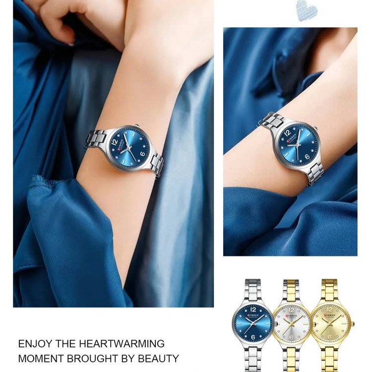 برند CURREN در این مدل تلاش کرده تعادلی هوشمندانه میان زیبایی بصری، راحتی در استفاده و دوام ایجاد کند؛ نتیجه این رویکرد، ساعتی است که هم از نظر طراحی و هم از نظر عملکرد، پاسخگوی نیاز بانوان خوشسلیقه میباشد.
