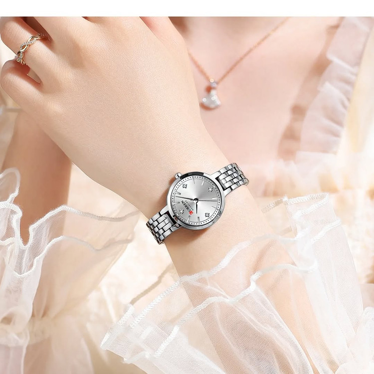 در مجموع، CURREN 9106 یک ساعت زنانه متمایز است که با طراحی مینیمال، جزئیات نگینی و کیفیت ساخت بالا، جلوهای مدرن و لوکس به استایل شما میبخشد و انتخابی هوشمندانه برای بانوانی است که به دنبال استایل شیک، حرفهای و ماندگار هستند.