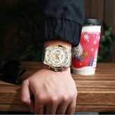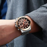 ساعت مچی کارن CURREN 8361 یک انتخاب شیک و جذاب برای آقایان است. این ساعت دارای صفحهای آبی با جزئیات طلایی است که به آن ظاهری لوکس و مدرن میبخشد. همچنین دارای سه موتور فعال (کرنوگراف) است که به شما امکان میدهد زمان را با دقت بیشتری اندازهگیری کنید. **ویژگیهای اصلی:** - **طراحی:** صفحه آبی با جزئیات طلایی و بند استیل ضد زنگ. - **موتور:** سه موتوره (کرنوگراف) با دقت بالا. - **مقاومت در برابر آب:** تا عمق 3 اتمسفر. - **شیشه:** شیشه معدنی مقاوم در برابر خش. - **قفل:** قفل کلیپسی دو طرفه از جنس استیل ضد زنگ. این ساعت نه تنها از نظر ظاهری جذاب است، بلکه از نظر عملکرد نیز بسیار کارآمد است. اگر به دنبال ساعتی هستید که هم در موقعیتهای رسمی و هم روزمره قابل استفاده باشد، CURREN 8361 میتواند گزینه مناسبی برای شما باشد⁶⁷⁸.