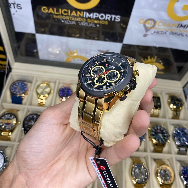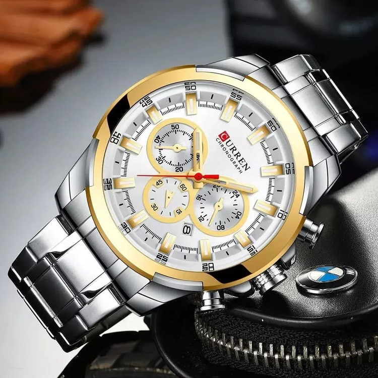ساعت **CURREN 8361** یک ساعت مچی شیک و مدرن است که دارای ویژگیهای زیر میباشد: - **طراحی**: این ساعت دارای ترکیب رنگ مشکی و رزگلد است که جلوهای بسیار زیبا و جذاب به آن میبخشد. - **عملکرد کرونوگراف**: دارای سه صفحه فرعی است که نشاندهنده عملکرد کرونوگراف میباشد. - **مقاومت در برابر آب**: این ساعت تا عمق 30 متر (3ATM) در برابر آب مقاوم است⁶. - **نمایش تاریخ**: یک پنجره نمایش تاریخ در نزدیکی موقعیت ساعت 3 قرار دارد. - **جنس بدنه و بند**: بدنه و بند این ساعت از جنس استیل ضد زنگ ساخته شدهاند که دوام و مقاومت بالایی دارند⁷. - **قطر صفحه**: قطر صفحه این ساعت 48 میلیمتر است که اندازهای مناسب برای مچ دست مردانه میباشد⁷. - **شیشه مقاوم**: شیشه این ساعت از نوع Hardlex است که در برابر خط و خش مقاوم است⁶. این ساعت مناسب برای استفاده روزمره و همچنین موقعیتهای رسمی و تجاری است.