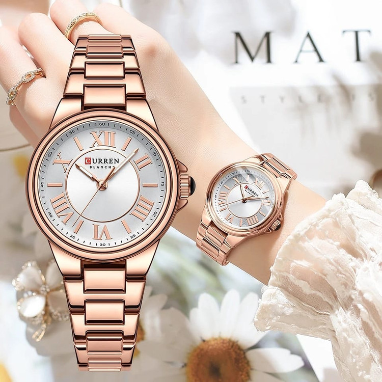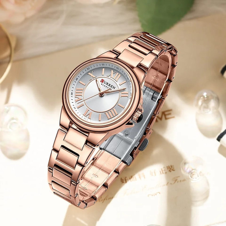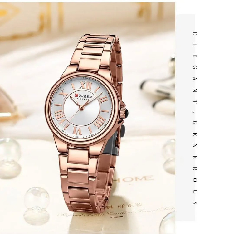 ساعت مچی زنانه کارن بند استیل CURREN 9091 ساعت اورجینال ضداب