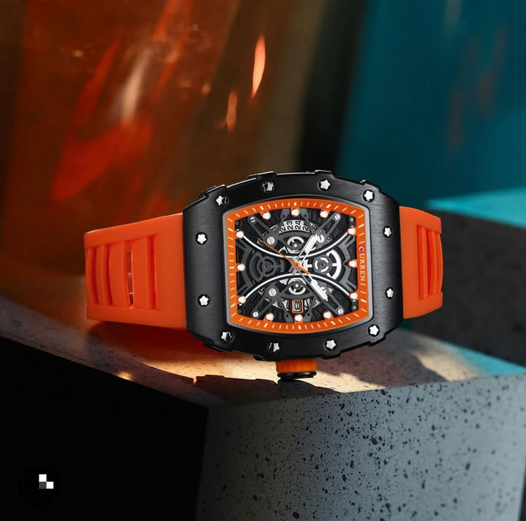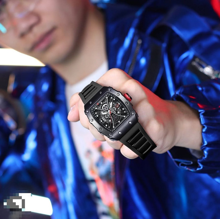 ساعت **CURREN 8438** یک ساعت شیک و اسپرت با طراحی مدرن است که برای استفاده روزمره و استایلهای رسمی یا غیررسمی مناسب میباشد. در ادامه مشخصات و ویژگیهای این ساعت را بررسی میکنیم: ### **مشخصات کلی:** - **برند:** CURREN - **مدل:** 8438 - **نوع موتور:** کوارتز (Quartz) با دقت بالا - **جنس بدنه:** استیل ضد زنگ - **شکل قاب:** مستطیلی - **جنس بند:** سیلیکونی نرم و مقاوم - **نوع قفل بند:** سگکی ساده - **صفحه نمایش:** آنالوگ (عقربهای) - **رنگ صفحه:** اغلب مشکی یا ترکیب رنگهای تیره و روشن ### **ویژگیهای خاص:** - **نمایش تاریخ:** دارای تقویم داخلی برای نمایش روز - **عقربههای شبتاب:** امکان مشاهده زمان در تاریکی - **مقاومت در برابر آب:** معمولاً تا 30 متر (مقاوم در برابر پاشش آب، اما مناسب برای شنا و غواصی نیست) - **طراحی اسپرت و مدرن:** مناسب برای استایلهای کژوال و نیمهرسمی ### **ابعاد و اندازهها:** - **قطر قاب:** حدود 43 میلیمتر - **ضخامت قاب:** 15 میلیمتر - **وزن:** سبک و راحت برای استفاده طولانیمدت ### **کاربرد:** این ساعت برای آقایانی که به دنبال یک ساعت اسپرت و در عین حال شیک هستند، انتخاب مناسبی است. همچنین گزینهای عالی برای هدیه دادن محسوب میشود.