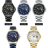 ### **مزایا و نقاط قوت:** ✅ **طراحی شیک و مدرن:** این ساعت دارای طراحی زیبا و کلاسیکی است که آن را برای استفاده روزمره و رسمی مناسب میکند. ترکیب رنگهای متنوع مثل نقرهای-آبی، طلایی-سفید و مشکی جلوهای لوکس به آن بخشیده است. ✅ **کیفیت ساخت مناسب نسبت به قیمت:** جنس بدنه از آلیاژ مقاوم و بند از استیل ضدزنگ ساخته شده که دوام خوبی دارد. همچنین شیشه هاردلکس از ایجاد خط و خش جلوگیری میکند. ✅ **عقربههای شبتاب و نمایشگر تاریخ:** این ویژگیها باعث میشوند که ساعت در شرایط نوری کم نیز خوانایی بالایی داشته باشد. ✅ **مقاومت در برابر آب (۳ اتمسفر):** در برابر پاشش آب مقاوم است و در شرایط عادی روزمره مشکلی ایجاد نمیکند، اما نباید با آن شنا یا دوش گرفت. ✅ **قیمت اقتصادی:** این مدل در مقایسه با ساعتهای برندهای لوکس، ظاهری شبیه به ساعتهای گرانقیمت دارد ولی با هزینهای بهصرفهتر قابل خرید است. ساعت **CURREN 8375** یک گزینهی عالی برای افرادی است که به دنبال یک ساعت شیک، باکیفیت و مقرونبهصرفه هستند. این ساعت برای استفاده روزمره و رسمی مناسب است، اما برای افرادی که به دنبال یک ساعت کاملاً حرفهای با موتور باکیفیت بالا و ضدآب واقعی هستند، گزینهای ایدهآل محسوب نمیشود. **بهطور کلی، اگر به دنبال یک ساعت اقتصادی با طراحی لوکس و امکانات پایه هستید، CURREN 8375 میتواند انتخاب خوبی باشد.**